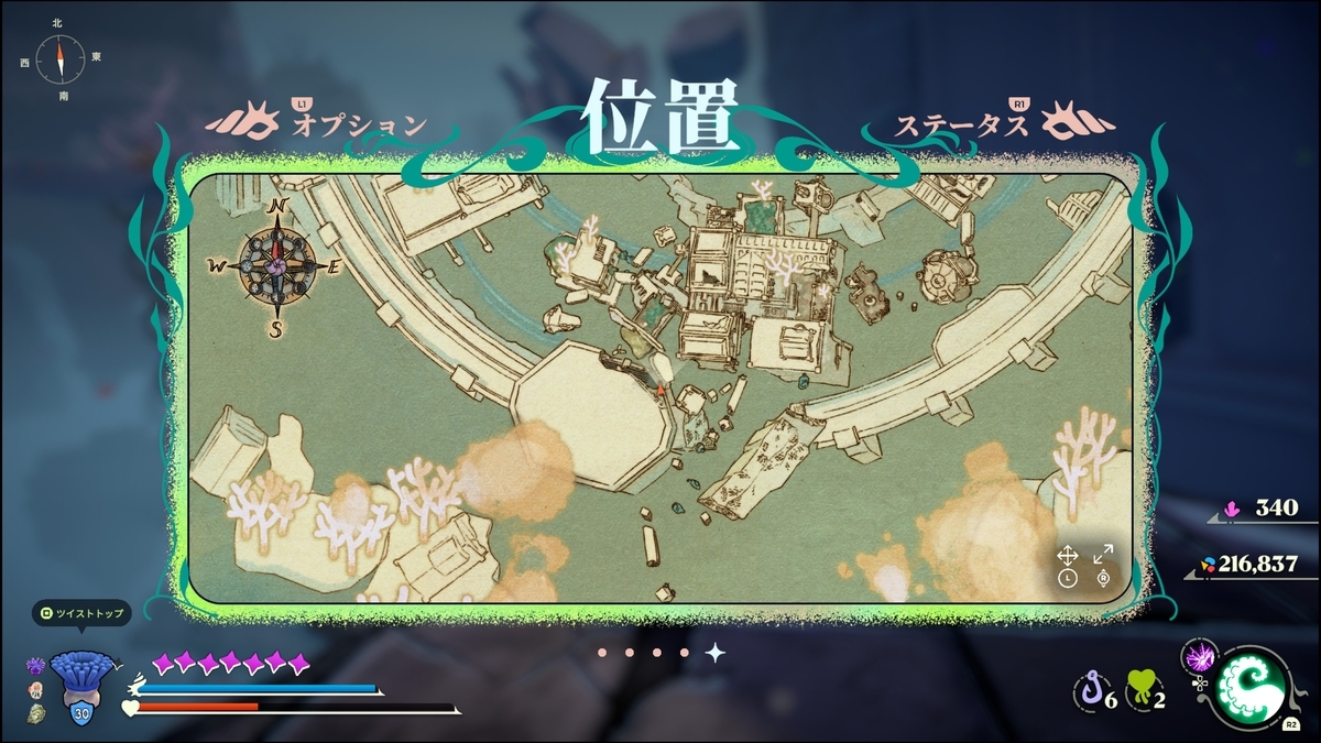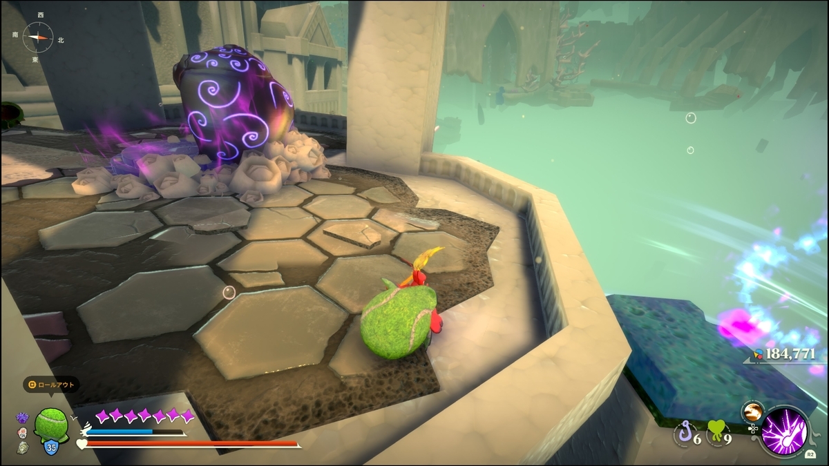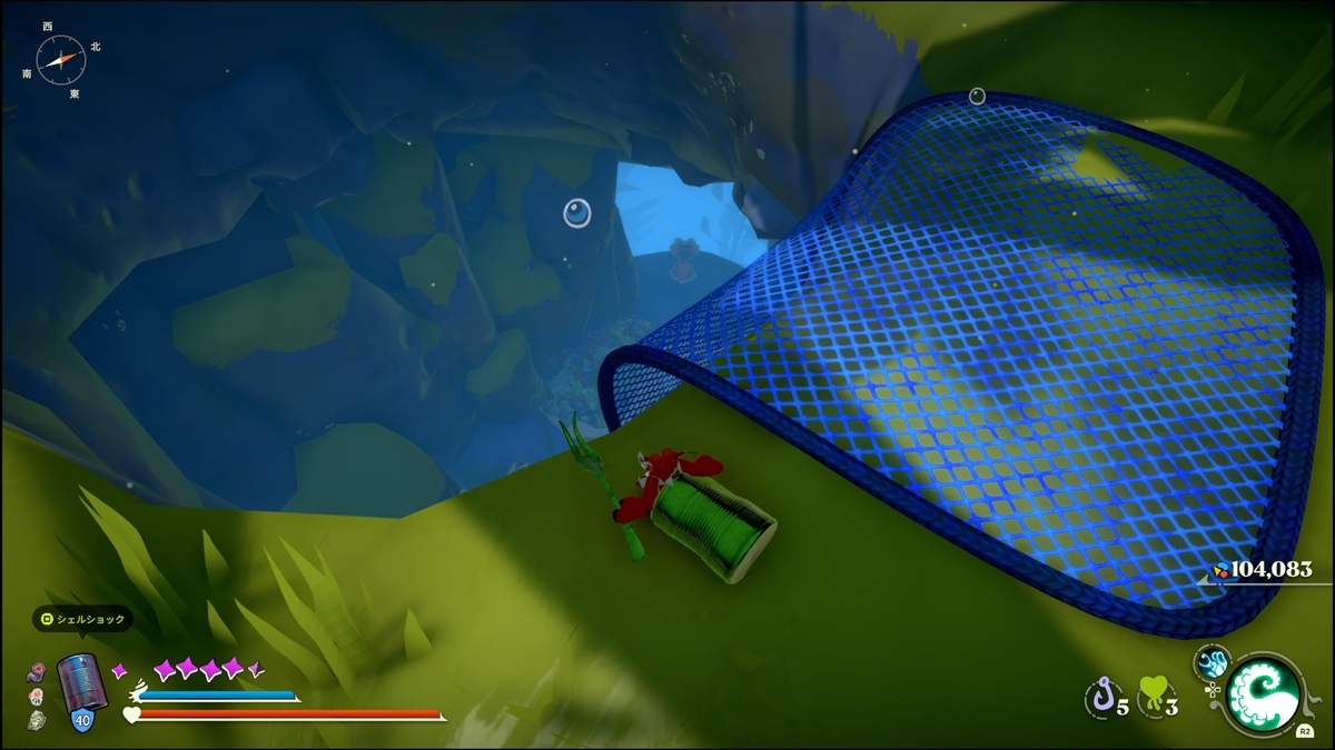 キューブを壊して浮上した南側にペットボトルを持ったカニがいる。倒すとステンレス・レリックをドロップする