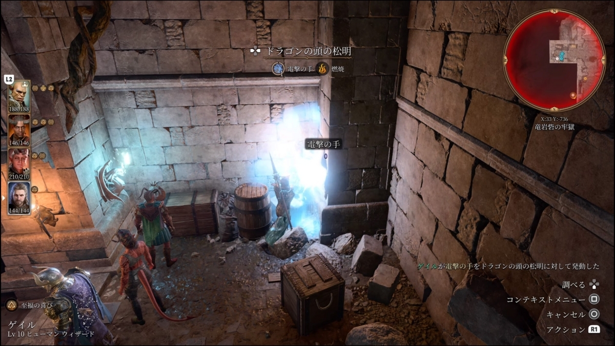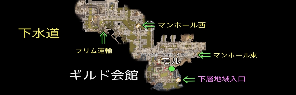 - ギルドvs石の王:イベントが発生する(戦闘)。ギルド側に加担した方が後が楽。近くのタルの上に「マインド・フレイヤーの寄生生物の標本」ギルドの船の倉庫にも2つある(難易度:自信家で確認)。