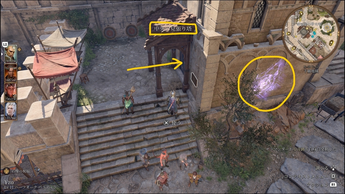 - ザールの宮殿:宮殿入口へはファストトラベル「下層砦の中央砦」を見て左すぐに見張りの塔への入り口がある。そこから防壁を伝っていくとたどり着く