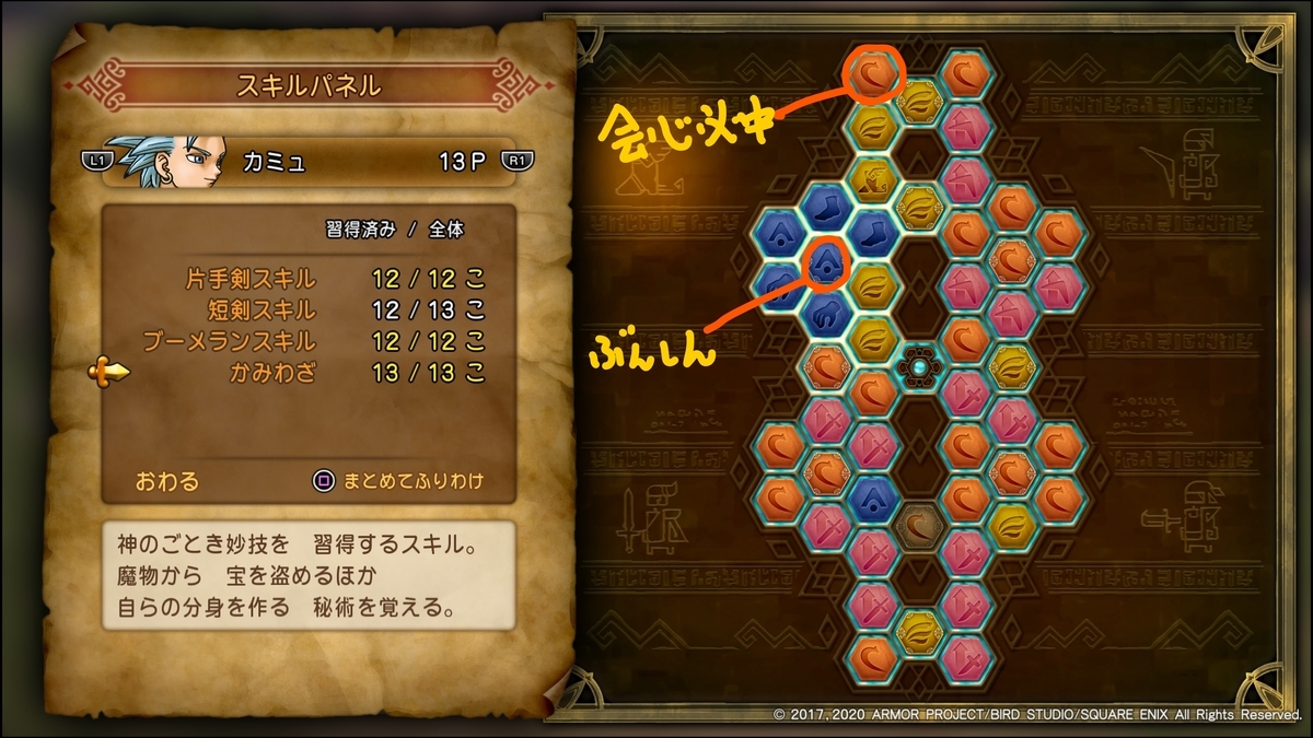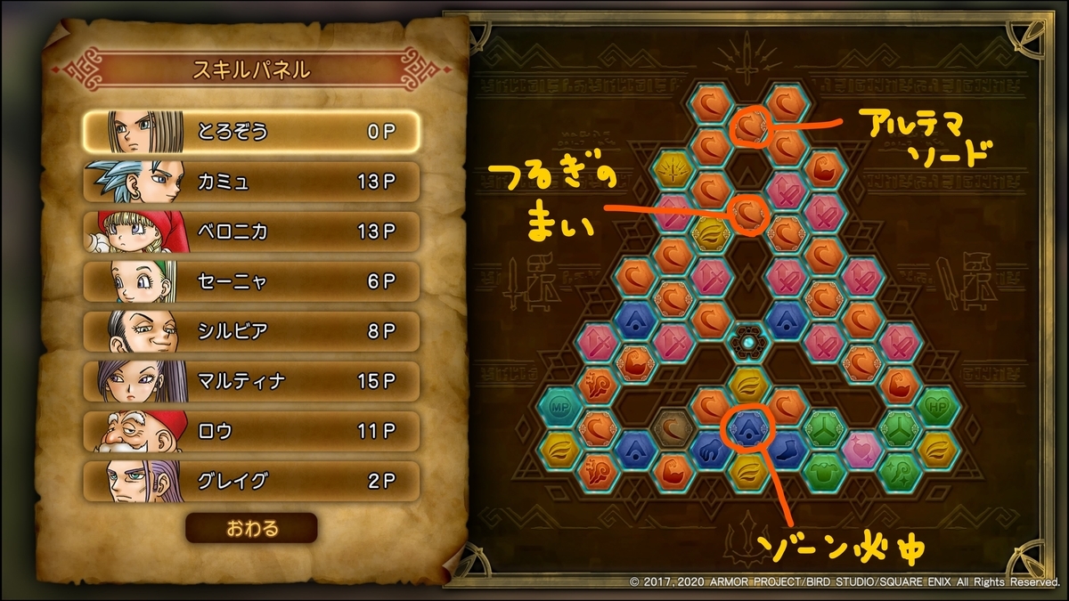 ①ネルセンの宿辺りで敵と戦い、「ぼうぎょ」でターン経過させてゾーンを溜めて「スペクタルショー」で稼ぐのが安定感がある。この時「おにこんぼう・邪(クリア後ネルセン周辺)」から「魔竜のたましい」を盗んでおくと効率がいい。これはクレイモランの王座にいるリーズレットと重要素材と交換できるので多く必要になります(要クレイモランイベントクリア)