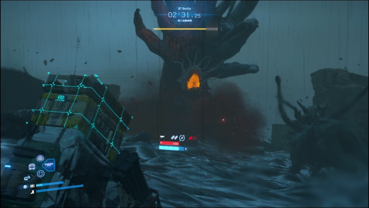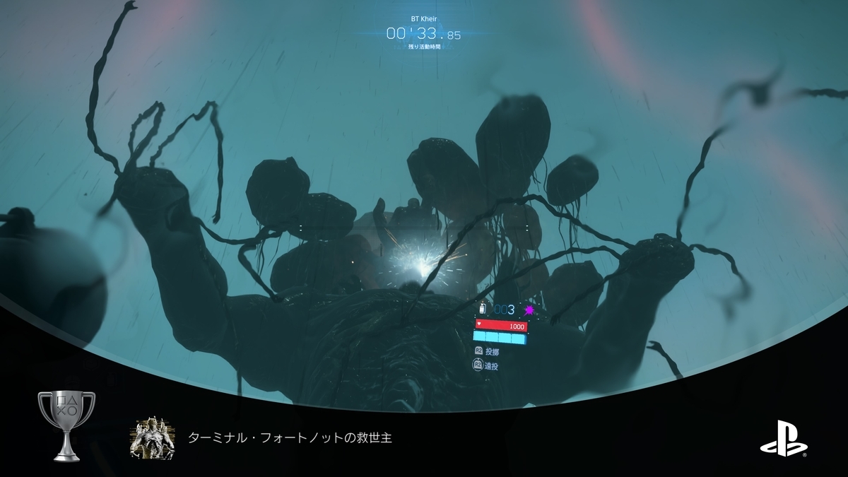 BT結晶体・マゼラン砲撃(クラスターボム)を呼び出し援護してもらい戦おう。浮遊体が出現したらマシンガンなどで倒し、ボスにはミサイルランチャーを撃ちこもう。捕獲したいので体力赤ゲージになったら頭部に「EXキャプチャーグレネード」を投げ込もう。意外に飛距離があるのでL2で構えてR2長押しで狙う。撃破時🏆「ターミナル・フォートノットの救世主」が解除されます。