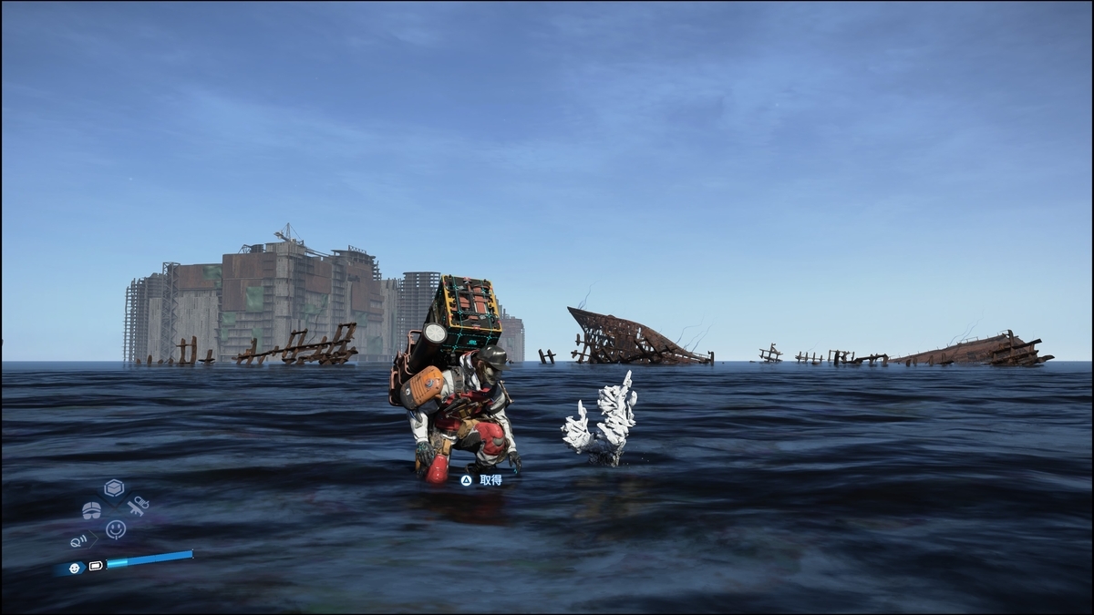 現地に着くと、大きなタール沼に覆われる。まだ大型BTは出てこない。荷物は3つ固まって家の上に配置されているのでダッシュジャンプで飛び移り回収する。荷物を全て回収するか時間経過で出現する感じだった