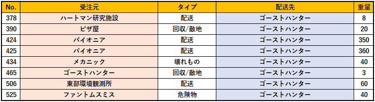 ゴーストハンターへの到達は8章で施設「時間生物学者」後、そこで受注できるサブオーダー依頼109が起点となる。