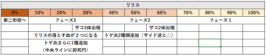 - 以降流れとしてはP1の攻撃が変化したものがリリスのHP40%切るまで続きます