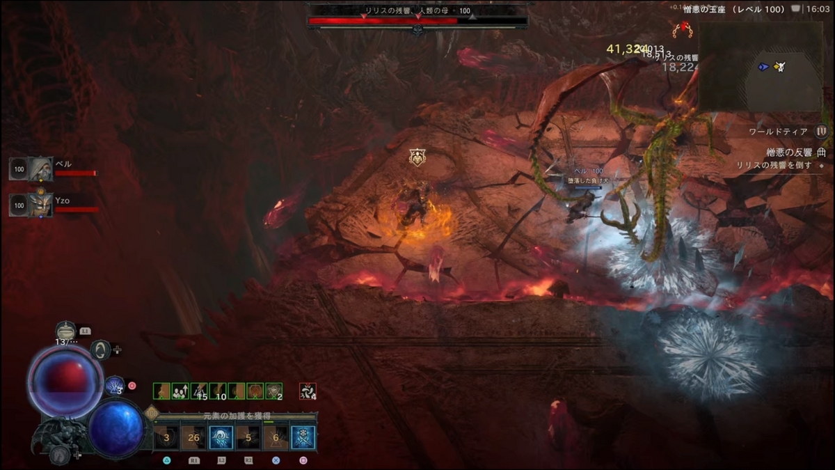 プレイステーション5でのソロでのリリス討伐例です。このビルド・装備があれば簡単に倒せるというものではありません。一定程度の練習とプレイスキルは要します