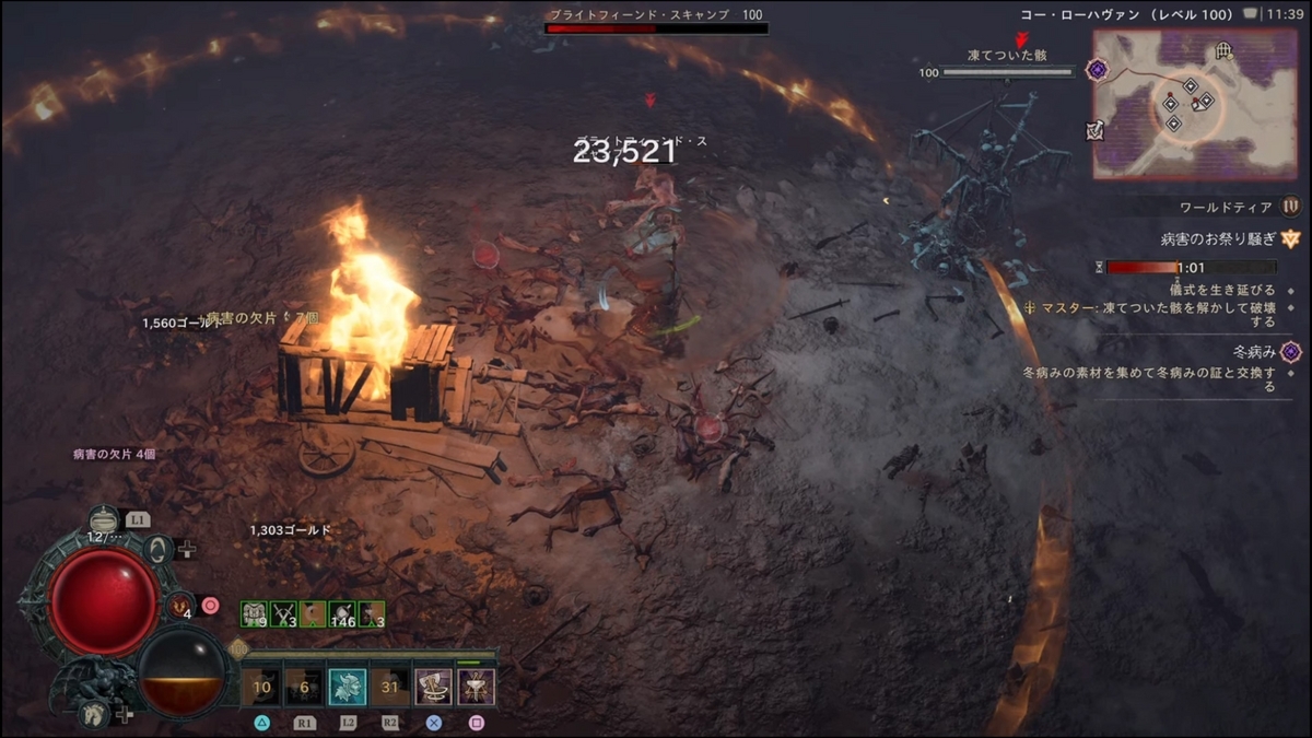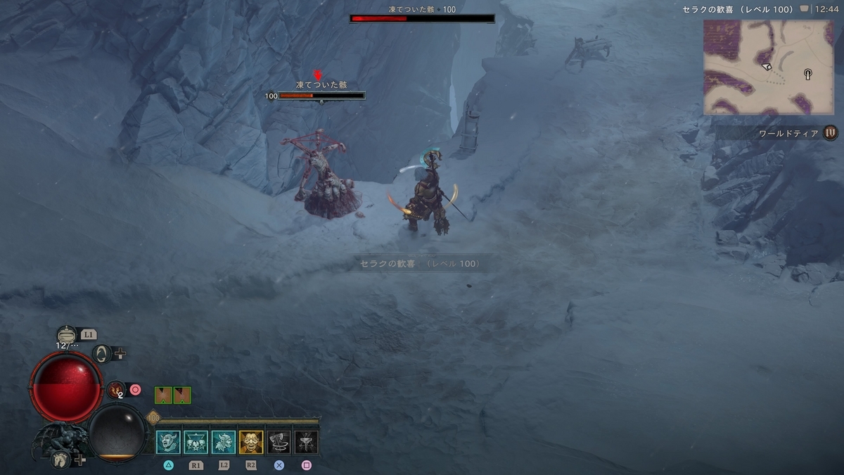 またフィールド各所に凍てついた骸があります。倒すと高確率でレジェンダリー装備が出るので倒していきましょう