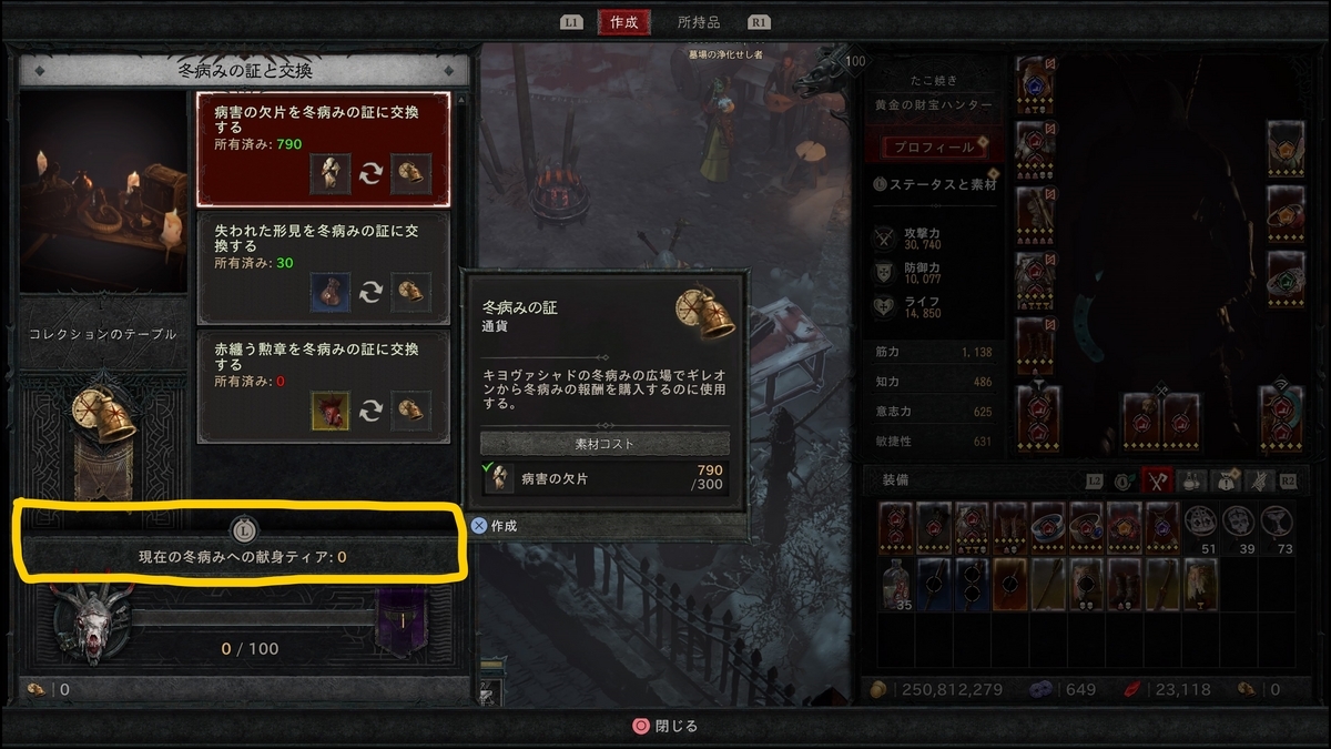 何回も交換を続けていくと、貢献ティアが上がります。貢献ティア上昇に伴う報酬も別途あるので見てみましょう。L3を押すと開きます