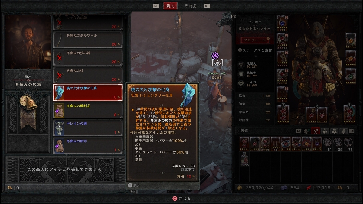 注目すべきは、エリクサー「ギレオンの薬」。効果がHP+15%・幸運の一撃発生率+15%に加えて、獲得経験値が+15%と他のものより格段に効果が高い。このアイテムが次シーズンに持ち越せるのなら多少持っておいてもいい。もちろん現状レベリング途中の人はどんどん使っていこう