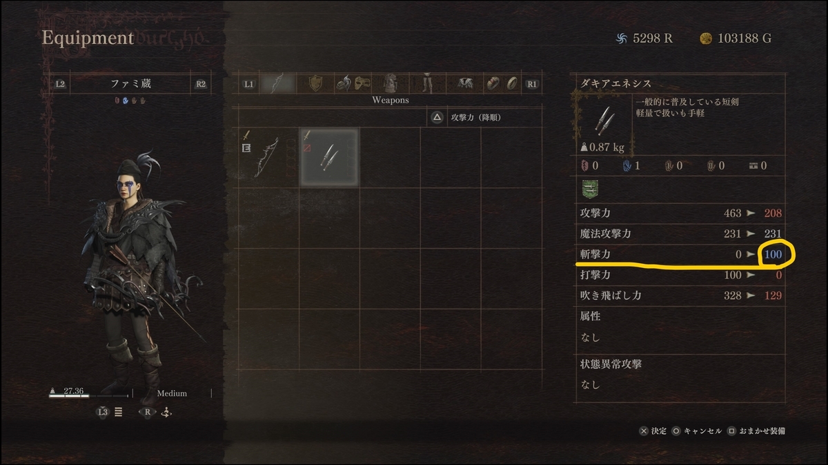 筆者は武器「ダキアエネシス」攻撃力277