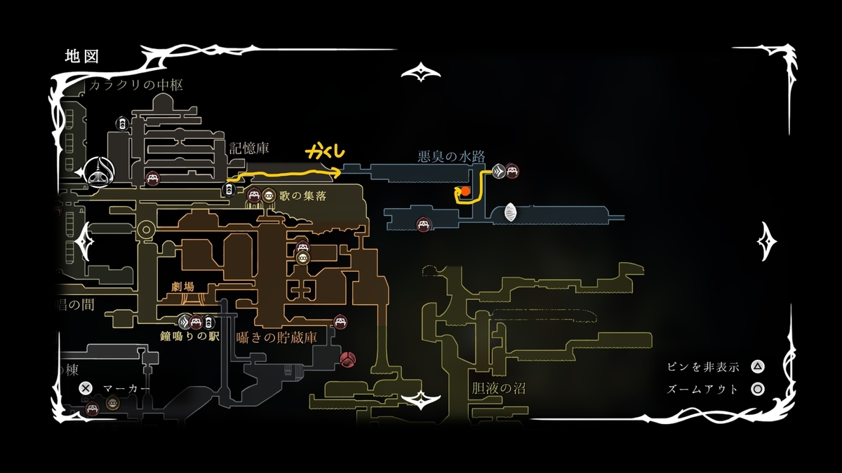 記憶庫の東端から侵入出来ます。胆液の沼からも侵入出来ますが難易度が高いのでおすすめできません
