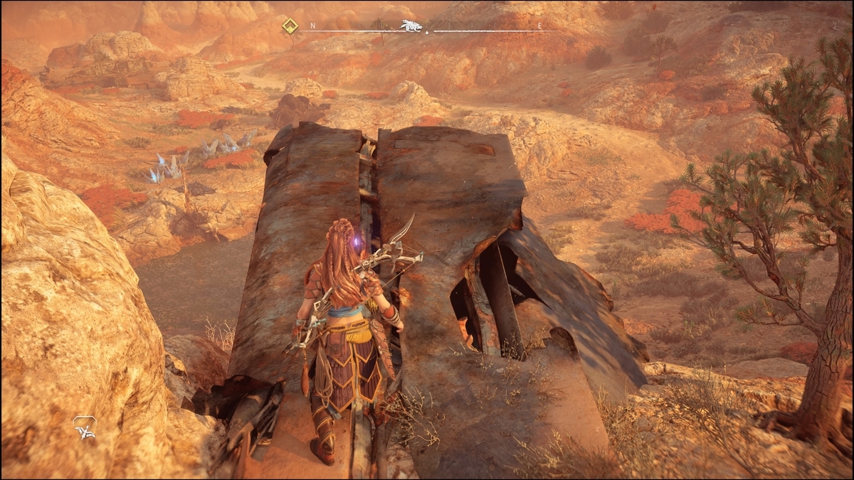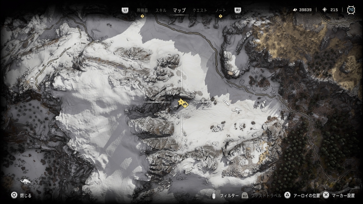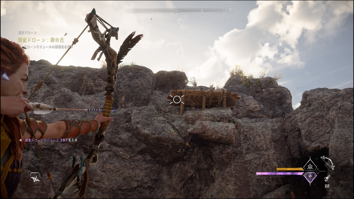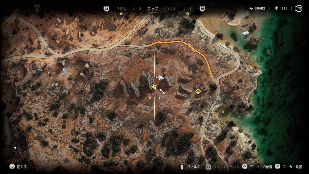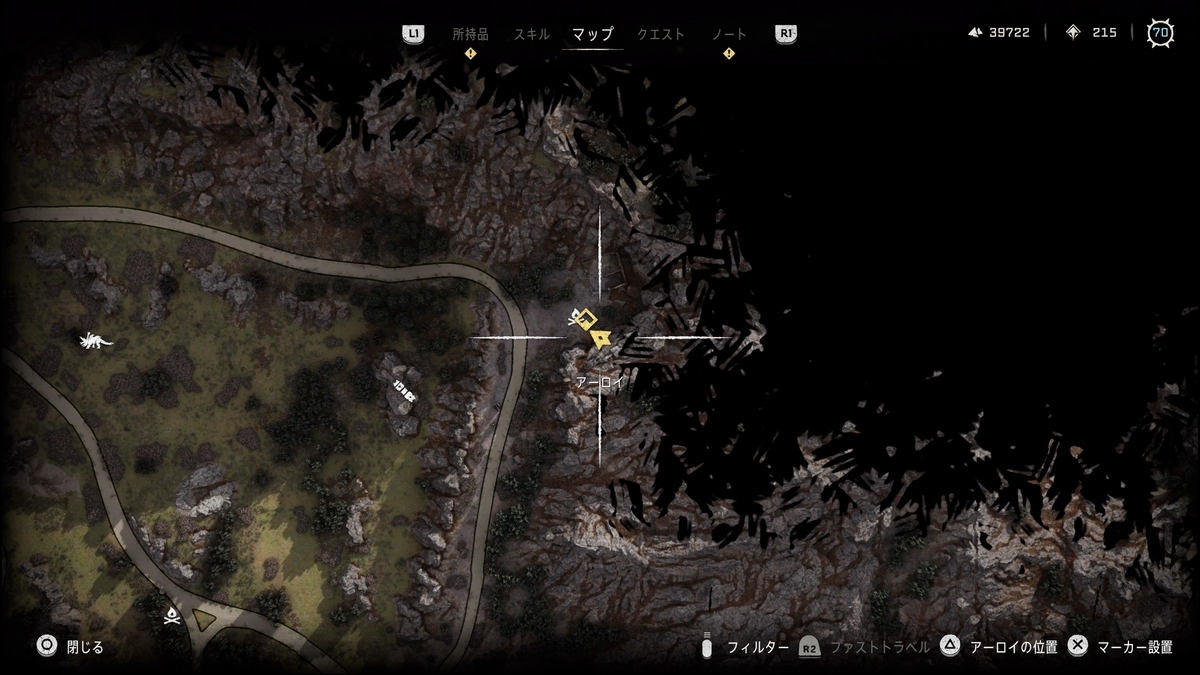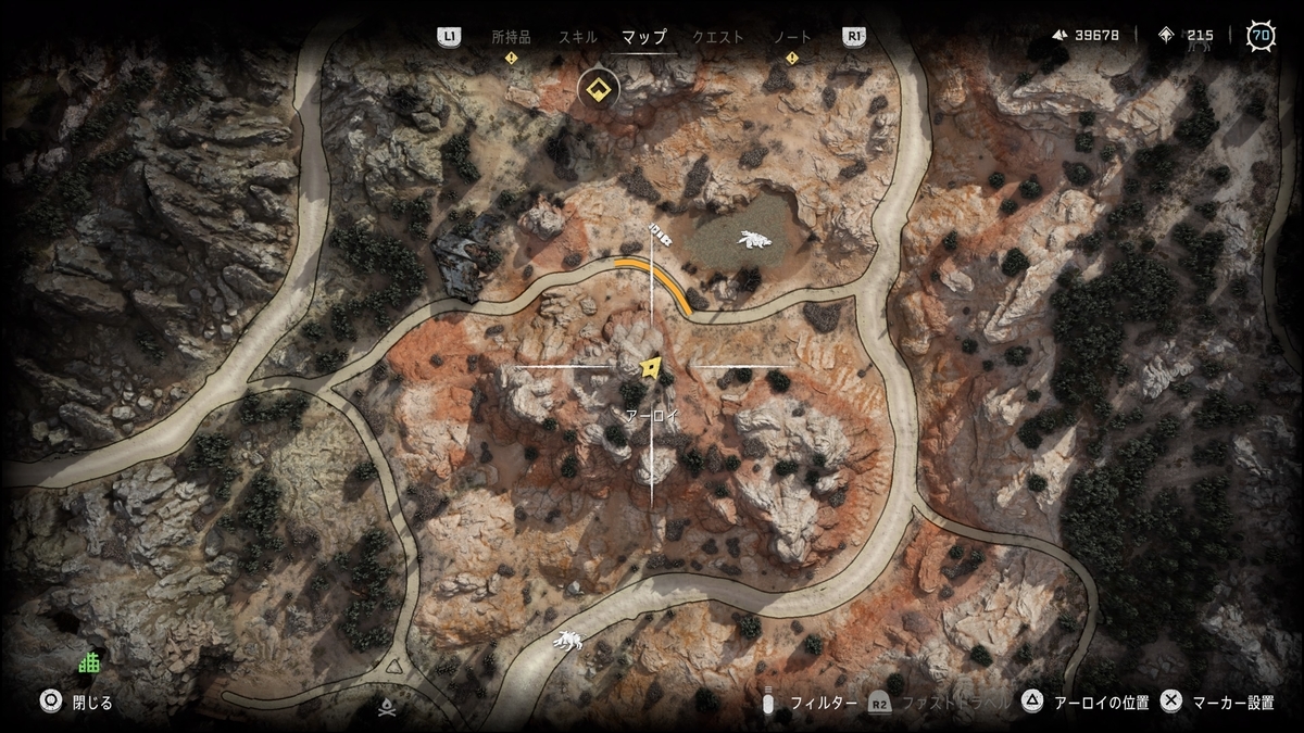 画像アーロイがジャンプ地点、対角位置にもいけそうな高台があります。本記事は山の上の金属ガレキを紹介。いずれもダッシュジャンプでギリでした