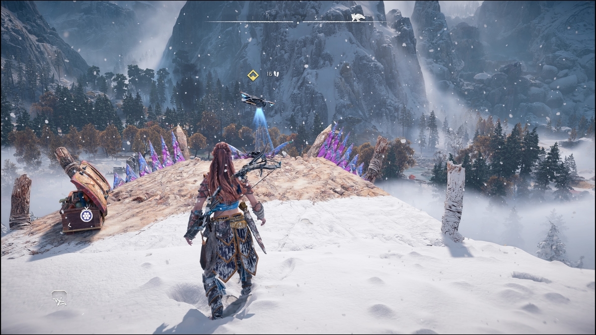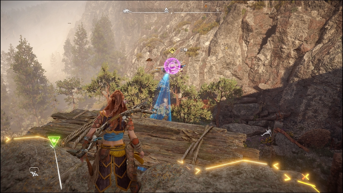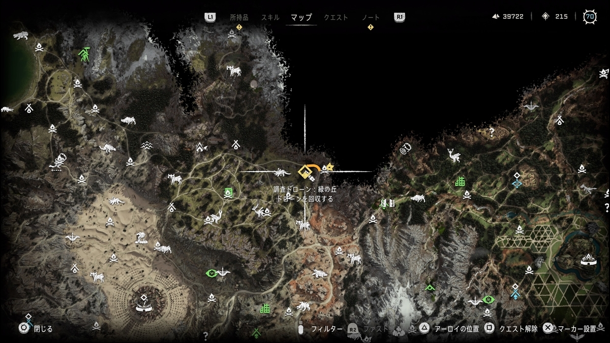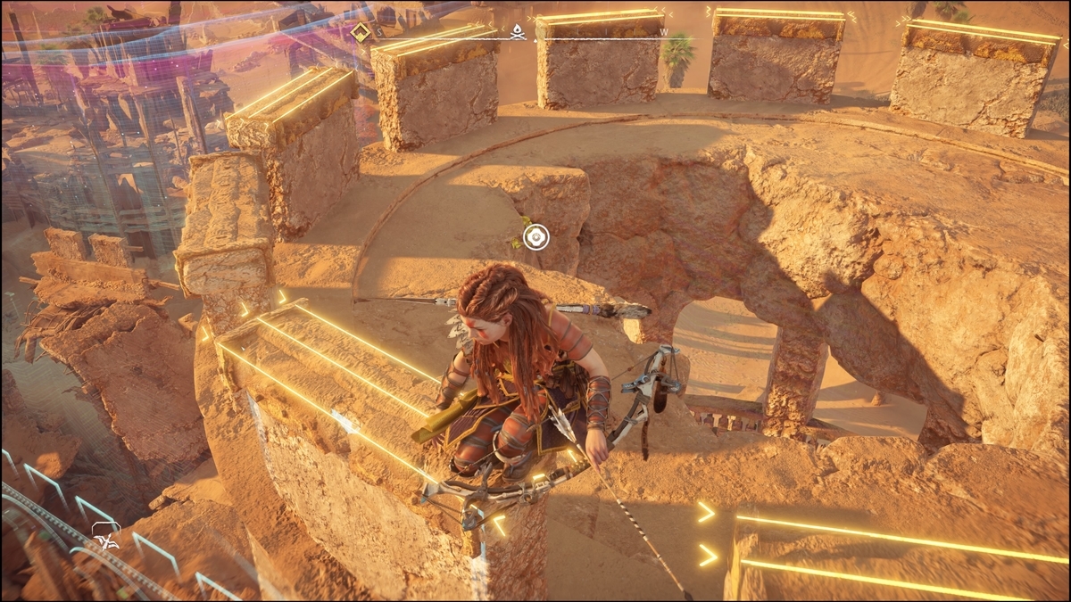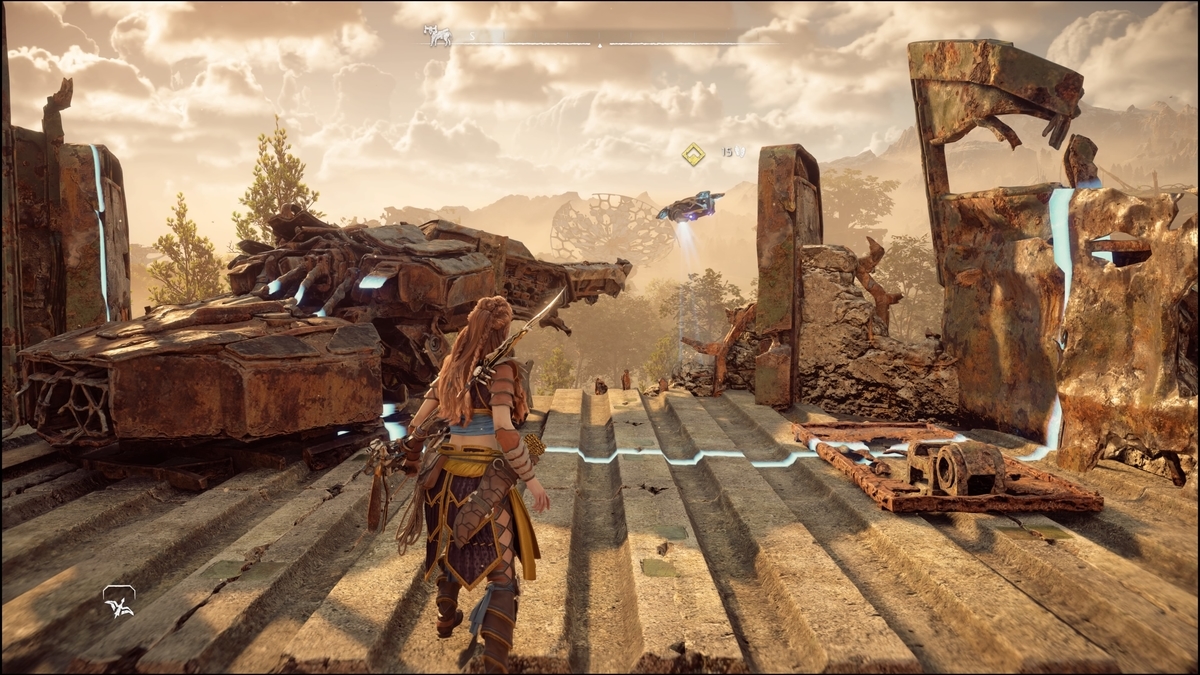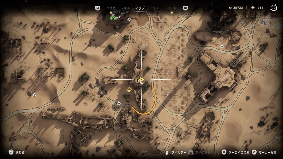 画像アーロイがジャンプ地点、対角位置にもいけそうな高台があります。本記事は山の上の金属ガレキを紹介。いずれもダッシュジャンプでギリでした