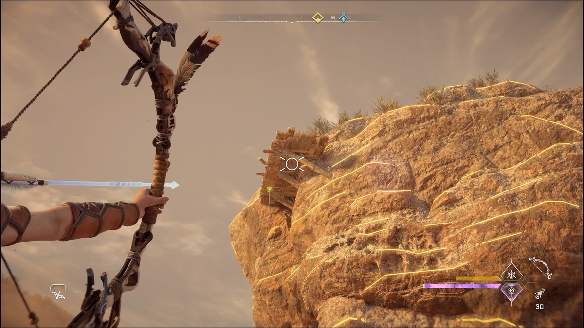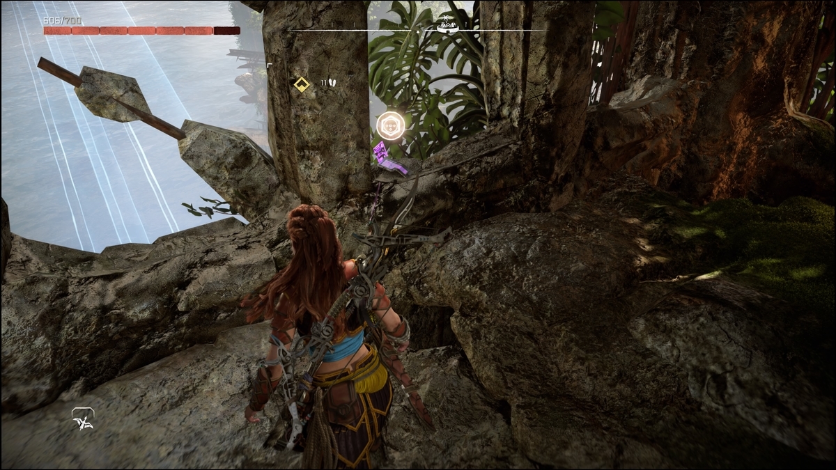 画像アーロイがジャンプ地点。ダッシュジャンプが安定。似たようなポイントがいくつがあるが、一番低い位置にある足場