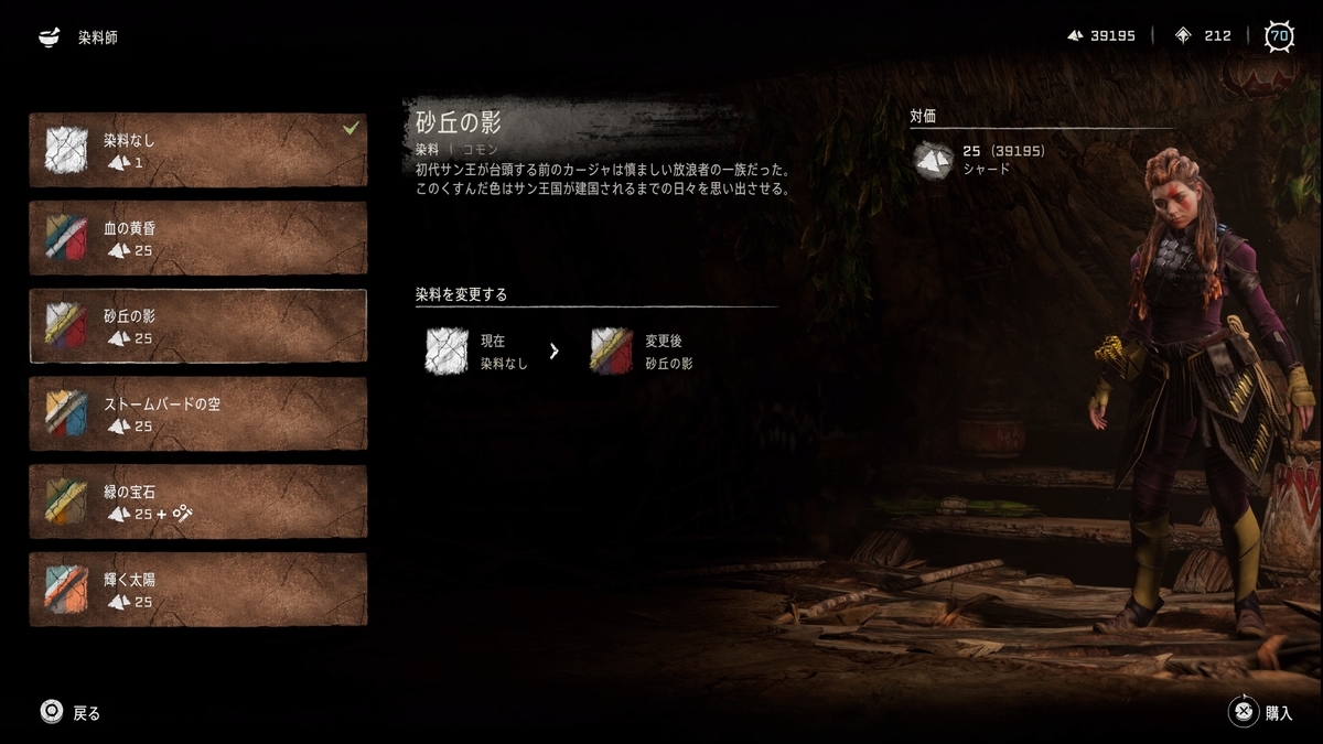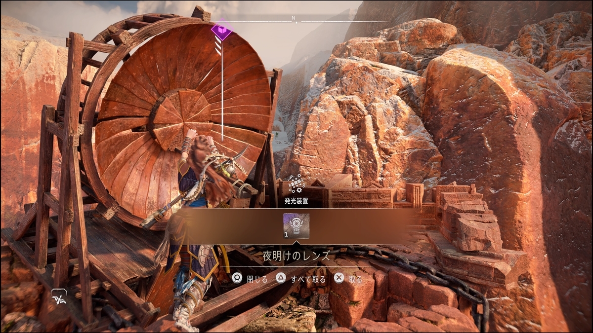 集めたレンズは「焦土の光」にいるレイナーに渡せる。全て渡すと資源・染料「砂丘の影」を入手