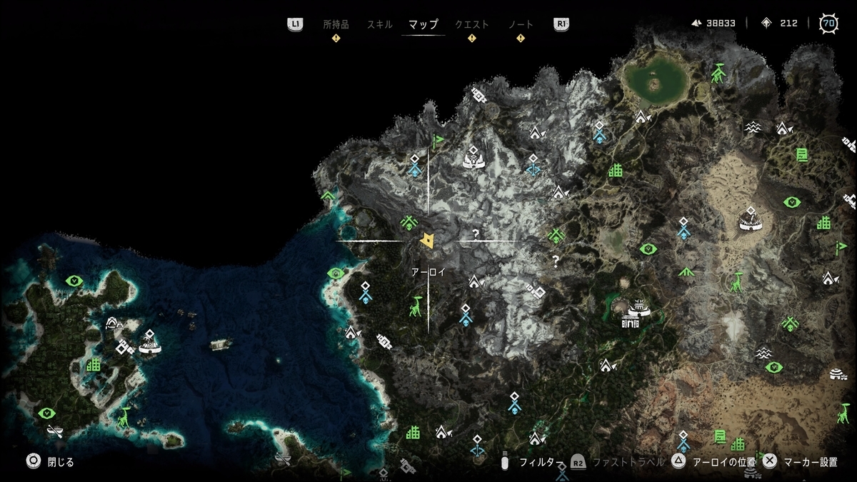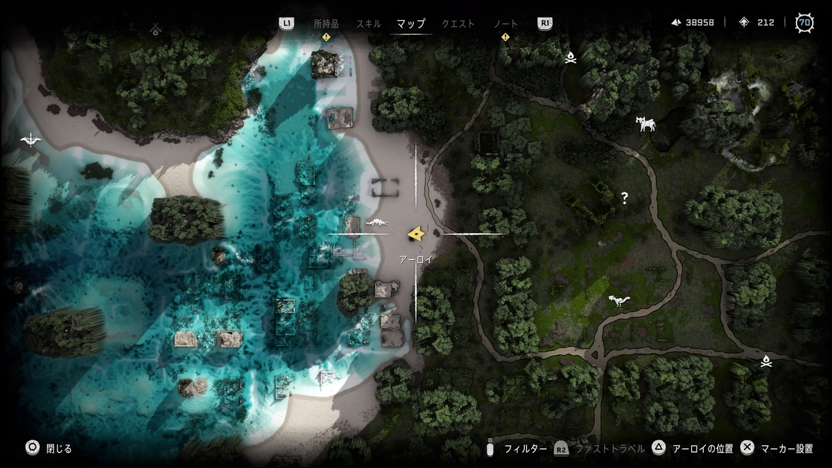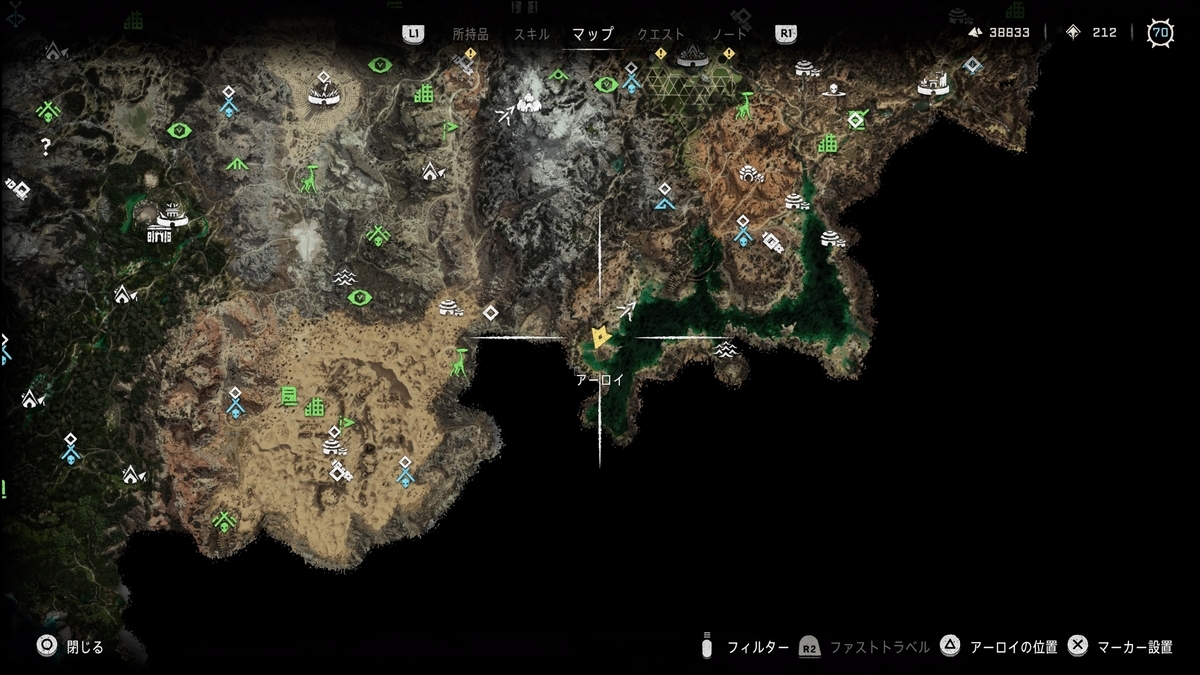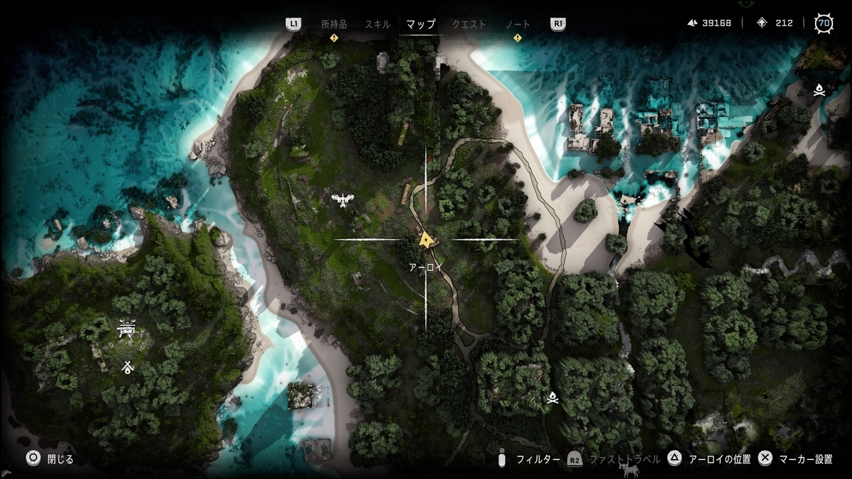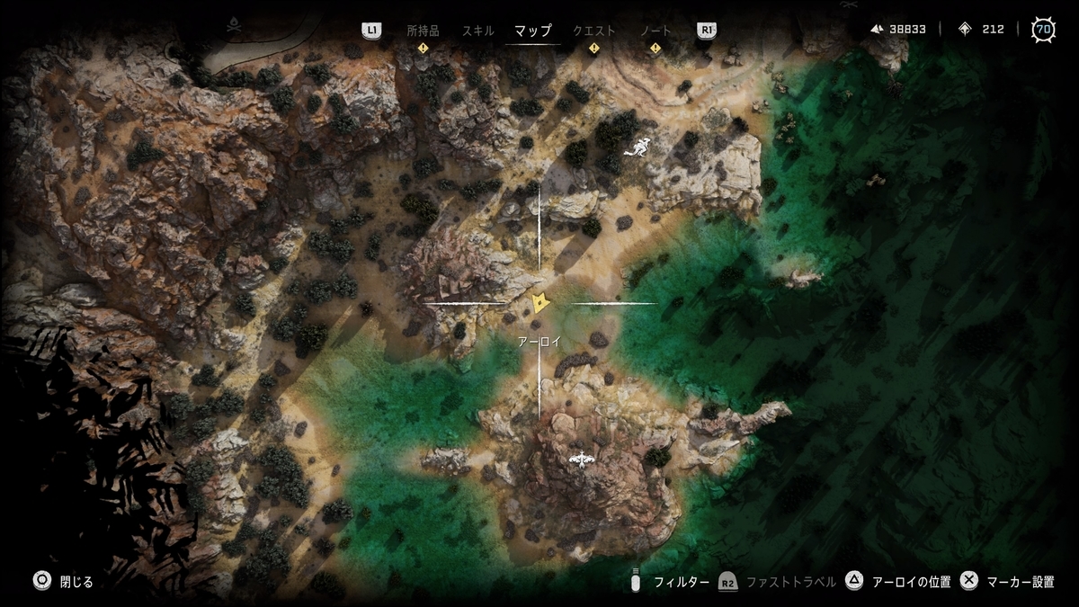 マップ上にヒントはないが、近くに行くとアーロイがしゃべりだしたりする