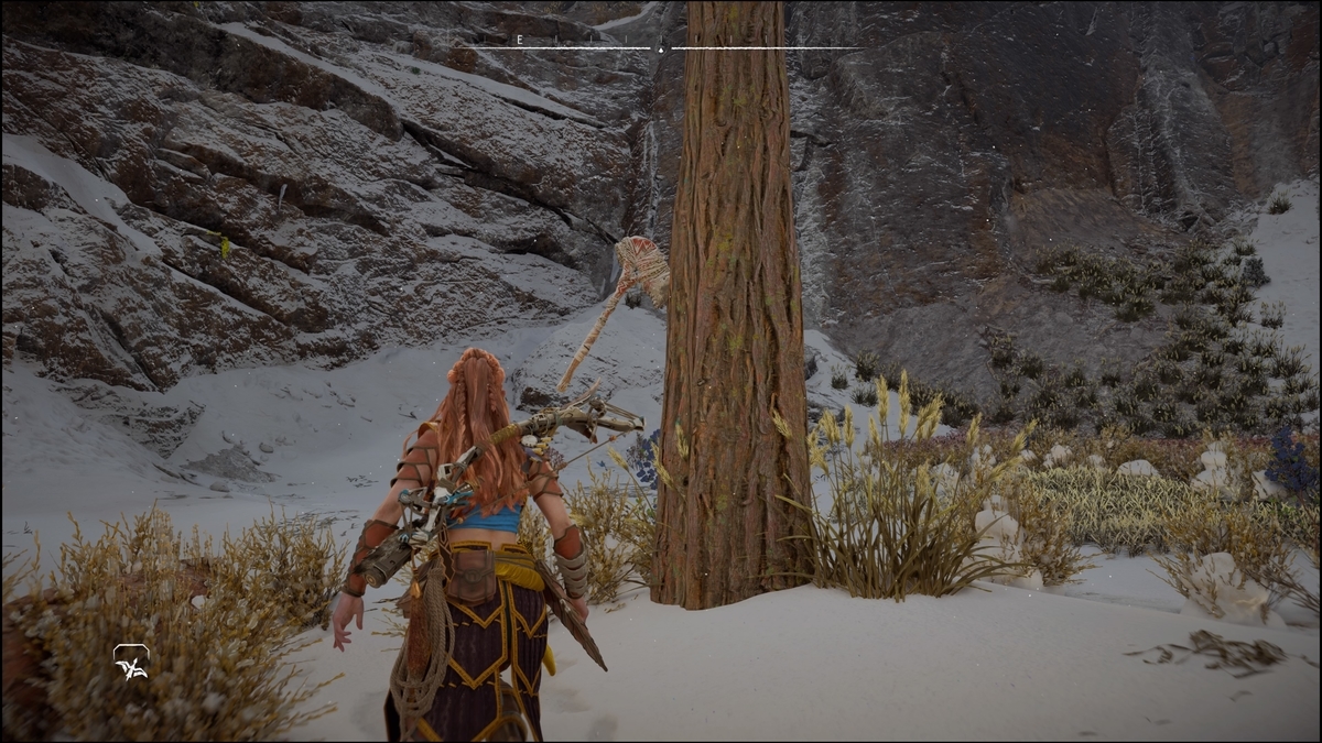 画像位置に行くと斧が木に刺さっているので調べる