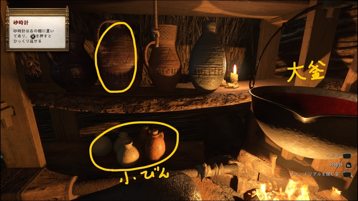 - 左下の小瓶に大釜の薬液を入れる。✖長押し