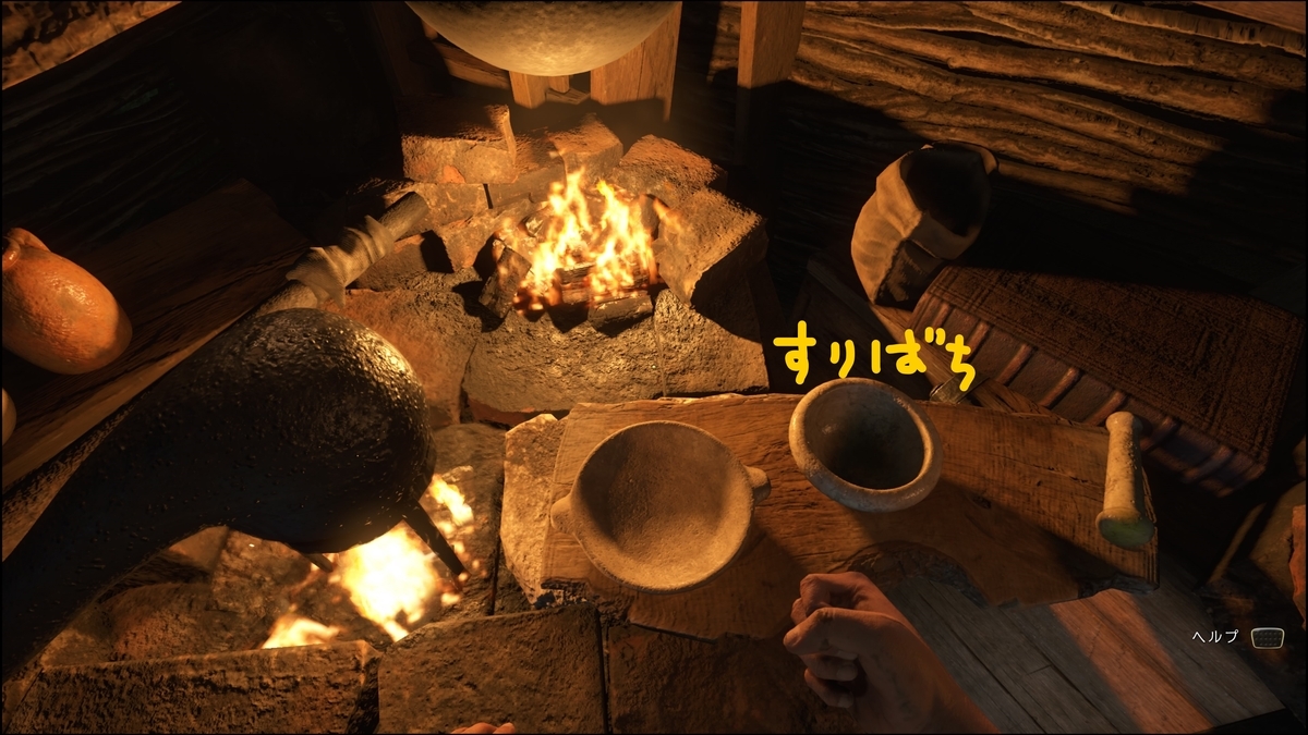 - 中央の大釜を火にかける