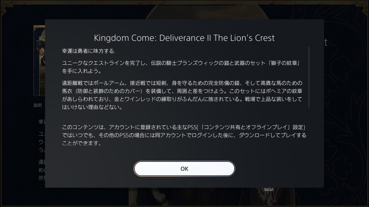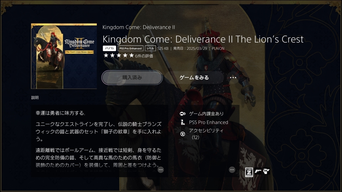 序盤では非常に強力な重装備が手に入る。予約特典DLCなので、無い人もあるかと思います。現在は有料で販売されています。私は予約特典で獲得しているのでPSstoreでの値段が表示されないのでわかりませんが、PCだと715円となっているのでそのくらいかと思います。