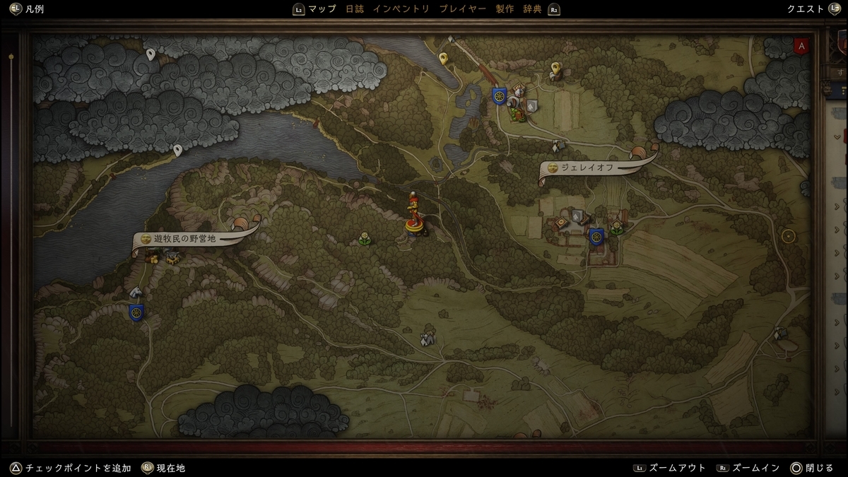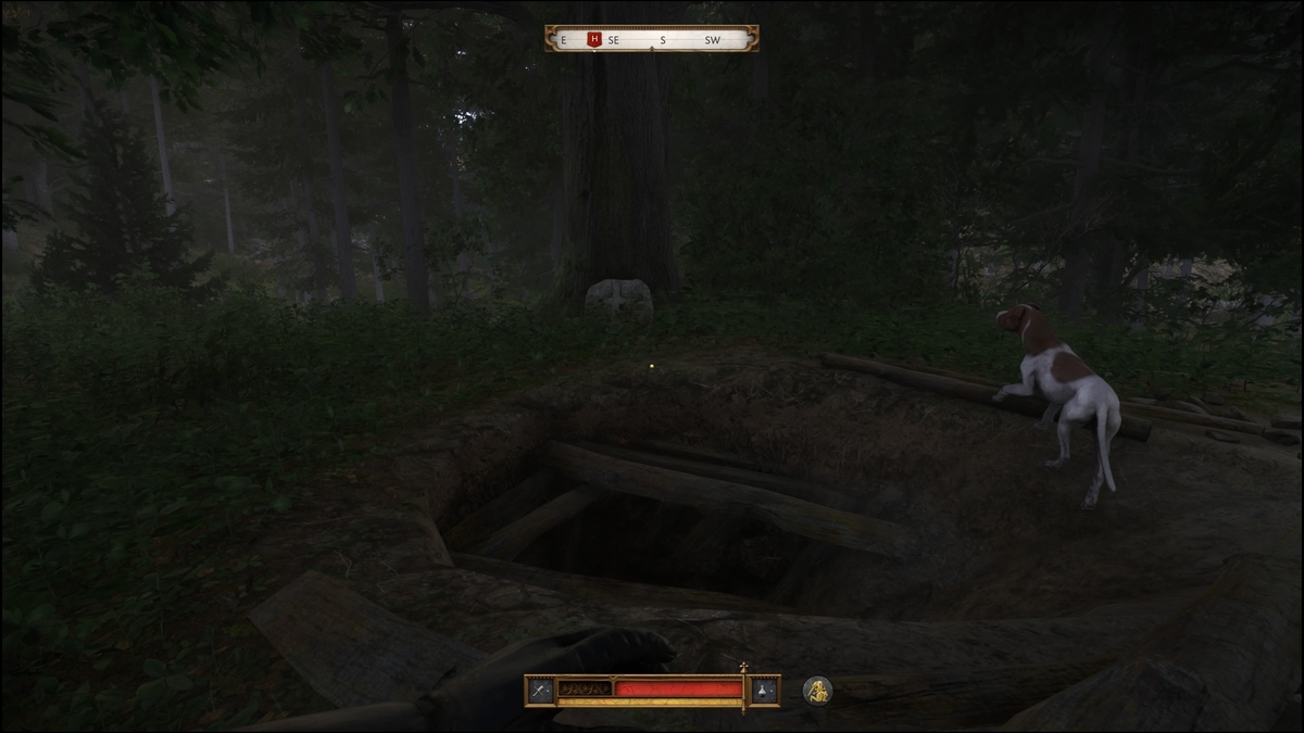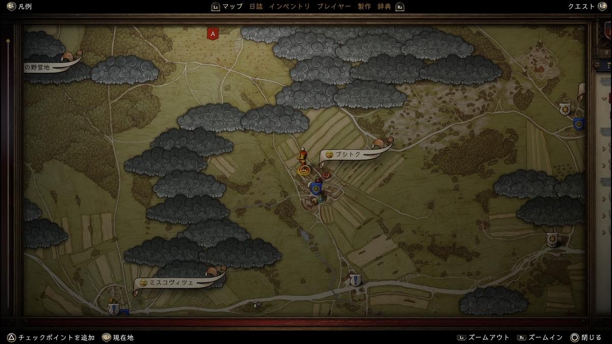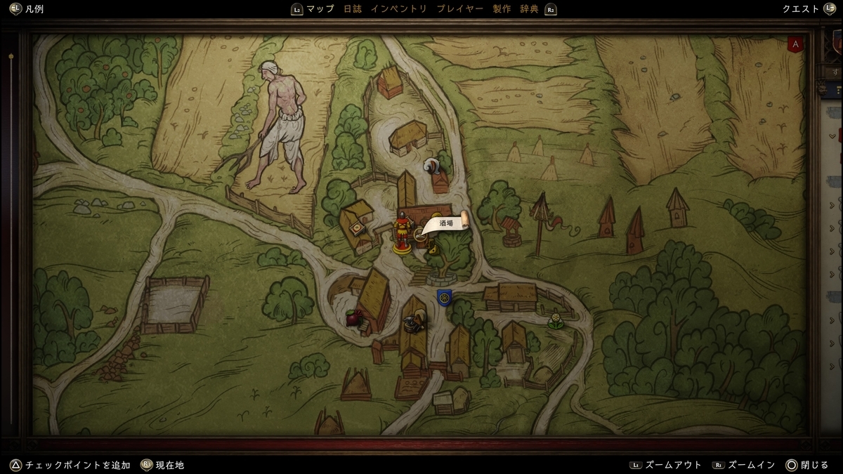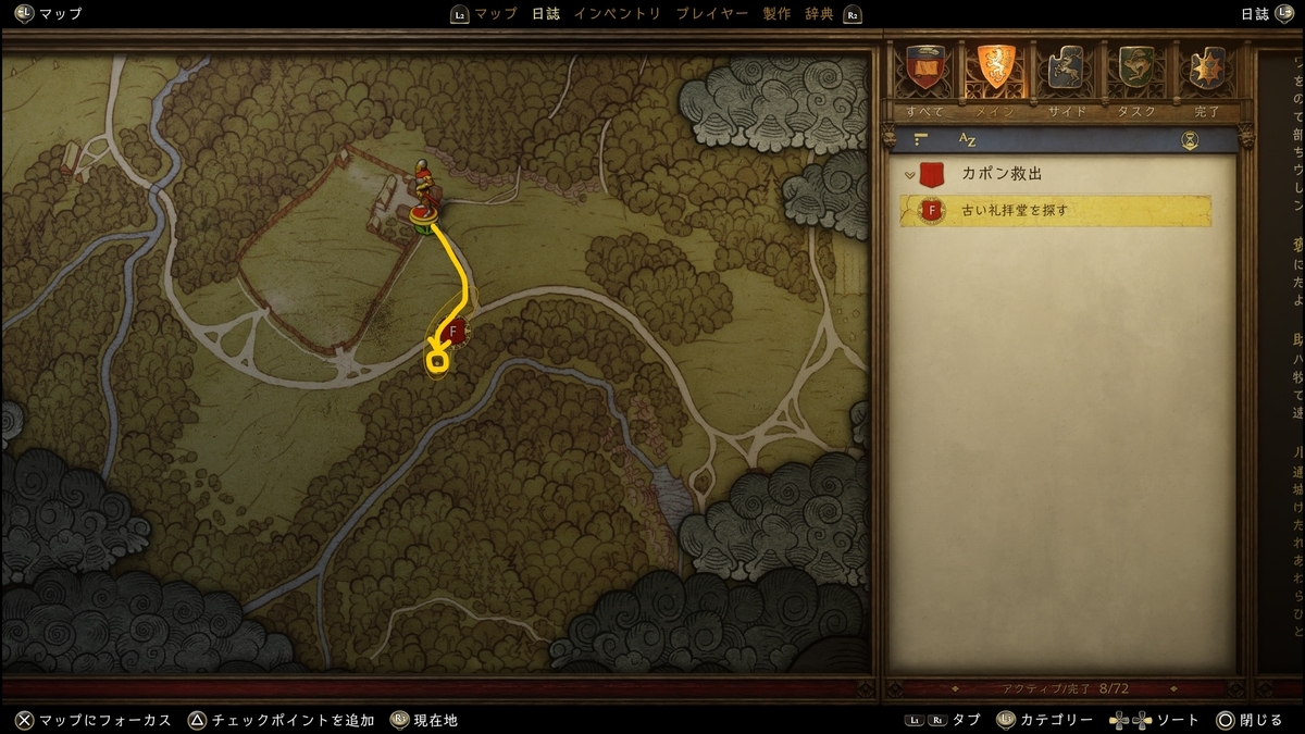 十字の石が目印。近くに行くと右下に「辺りを見る」が表示される