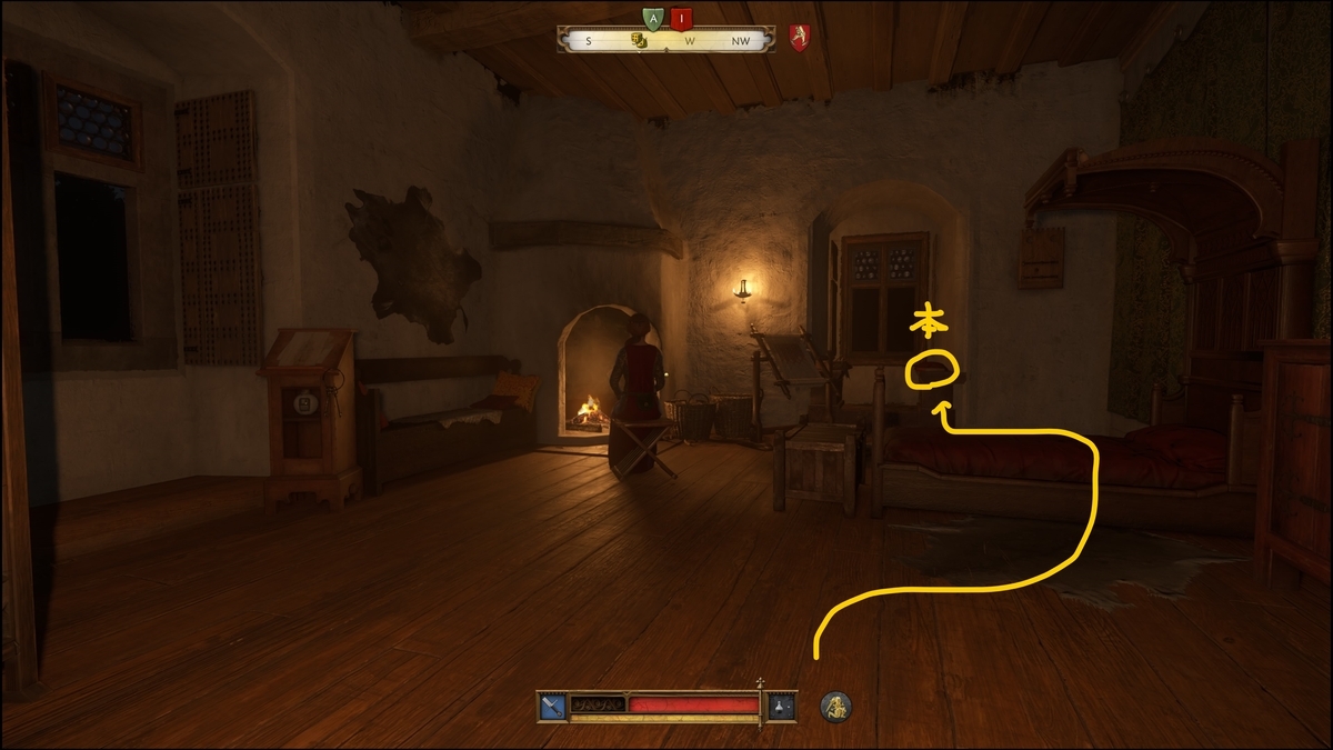 名ありNPCオフィーリア嬢は倒したくないので、ベット脇から本を盗みます