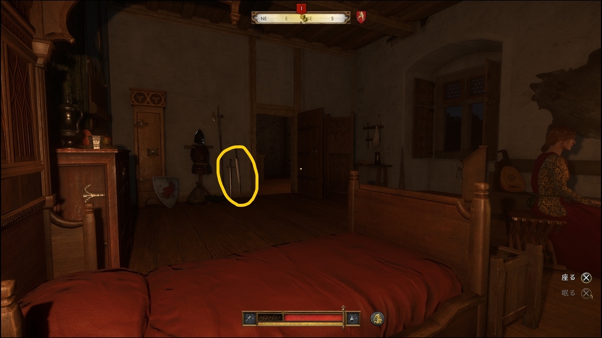 部屋から出る手前にある、「ブロードロングソード」「軍用剣」を取る。後でハンス達に渡します