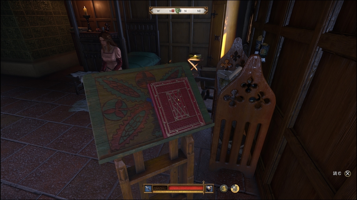 部屋の台座にある本を読む。ローザと話す