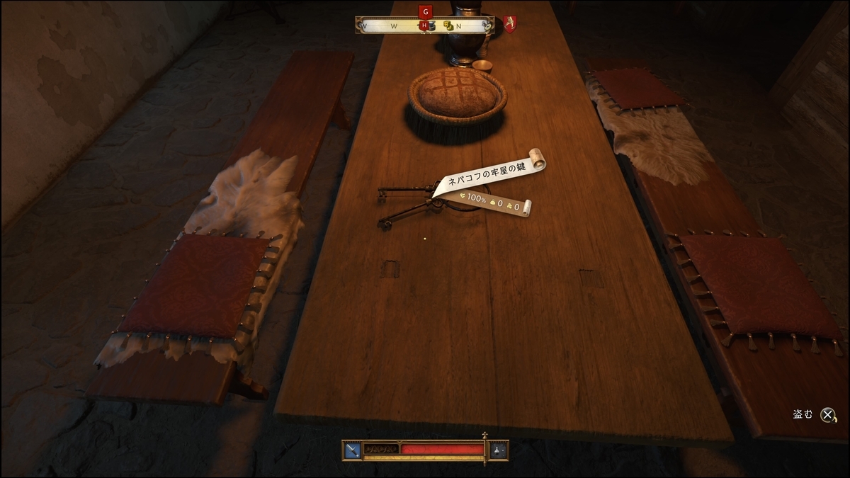 ダイステーブルから奥の階段を進んださきの金属の扉を開ける。さらに目の前の扉を開けた部屋のテーブルに「ネバコフ牢屋の鍵」があるので盗む
