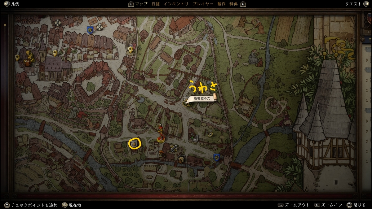 クエストを受注するにはクッテンバークの宿屋「壁の穴」の主人に噂話を聞いてクエストアイコンが出る