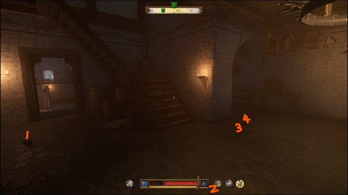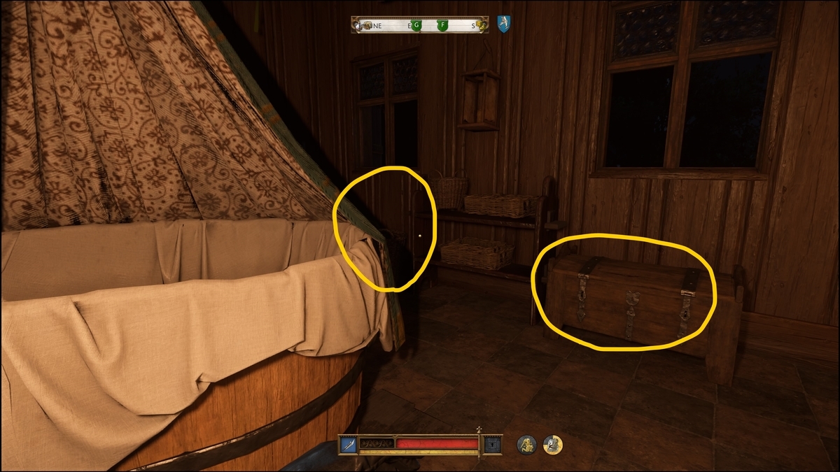 - 2階上がってすぐのトビラ。階段をさらに上がり正面のドアを入り右の扉の部屋の奥の棚から「異国の香油」を盗む