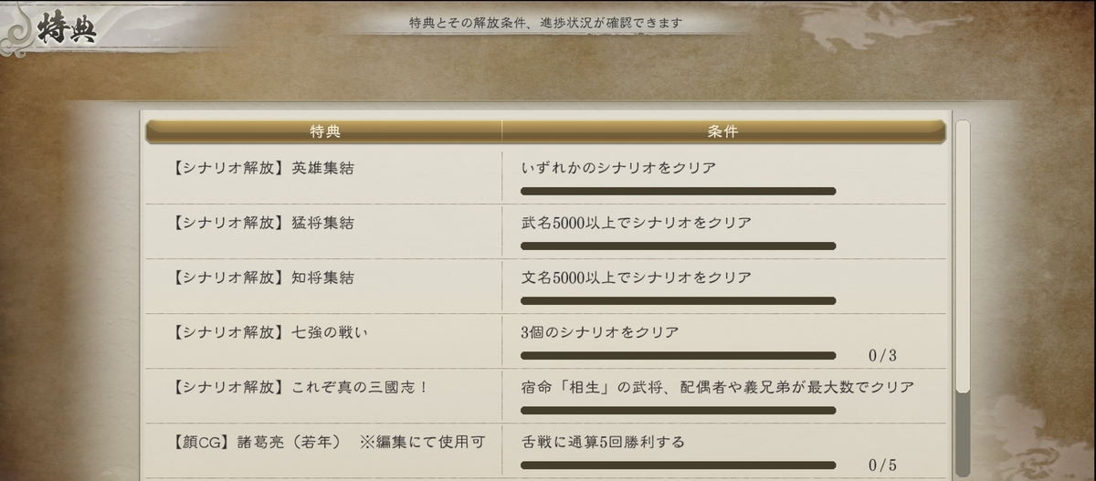 演義伝「収集家」発生:名馬・武具・書物各種を1つ以上集めると発生?筆者の場合、武具6・書物7・名馬1を集めたら発生したが、明確な発生条件は不明。