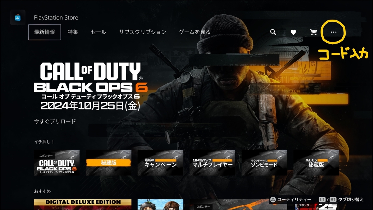 早期購入特典:シナリオ「武に優るものなし」コード入力はいくつか方法がありますが、私はいつもPSstoreから入力しています(パッケージ版のみかな?)