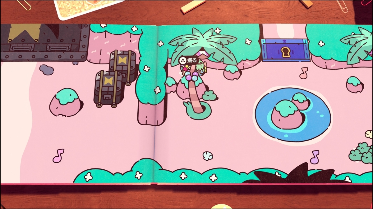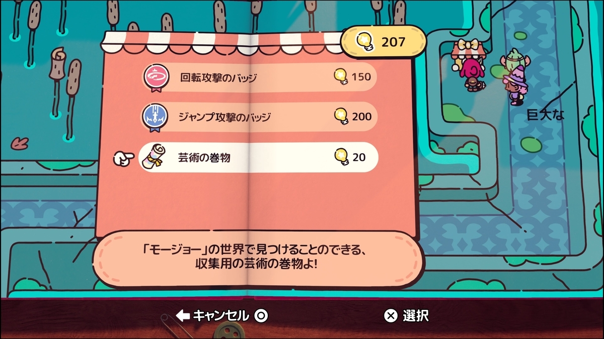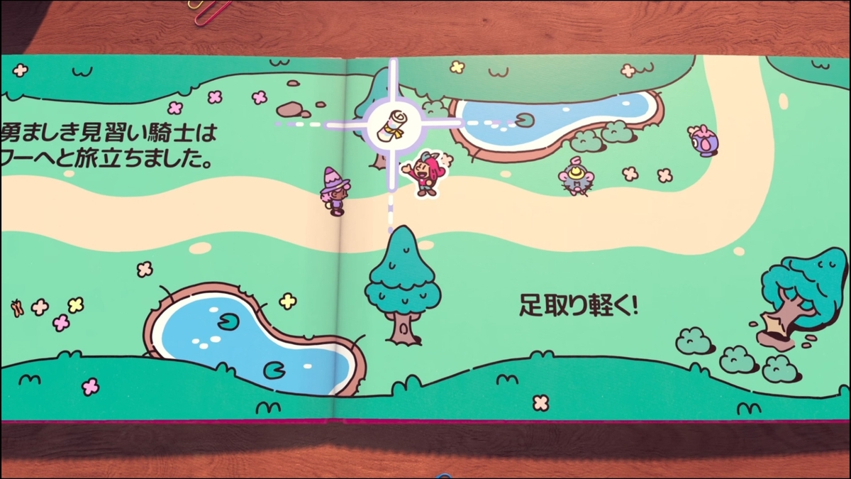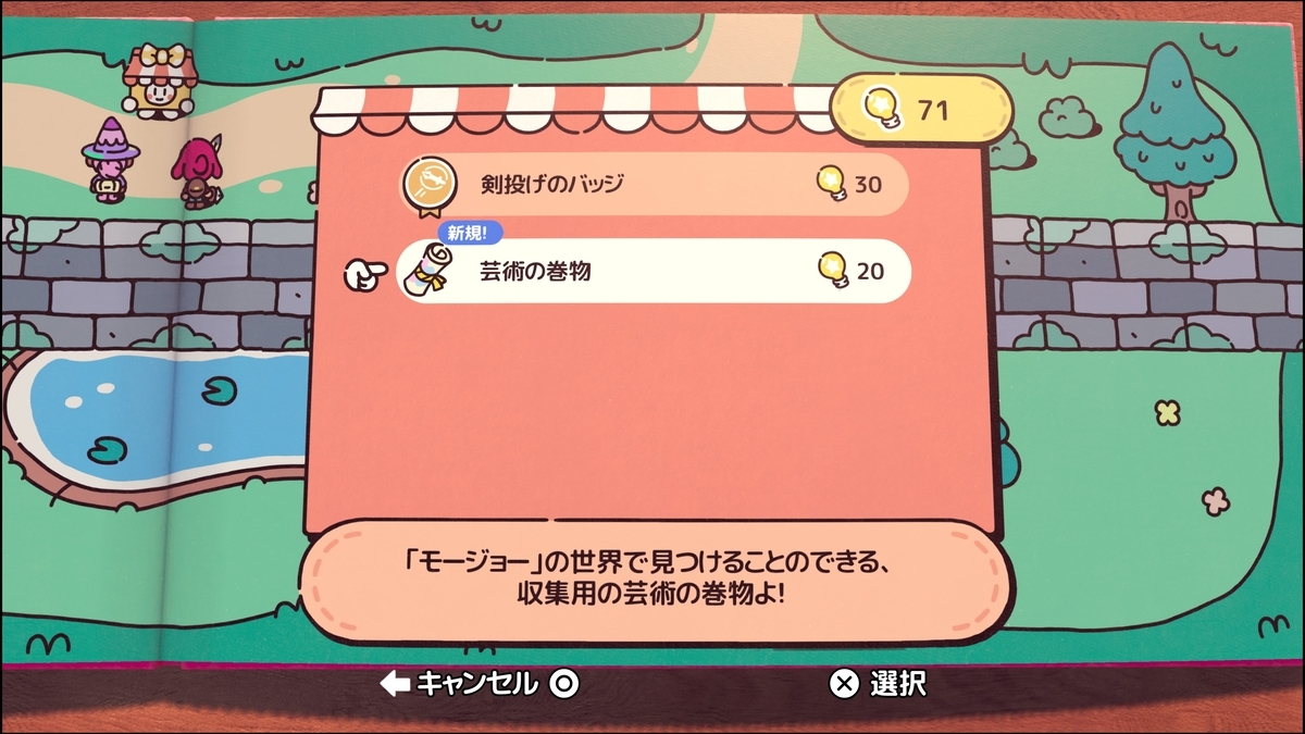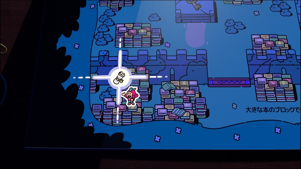 ジュースを渡し出てきたら、3D世界の本の北側から上へ進める段差があるので進んでいくと巻物がある