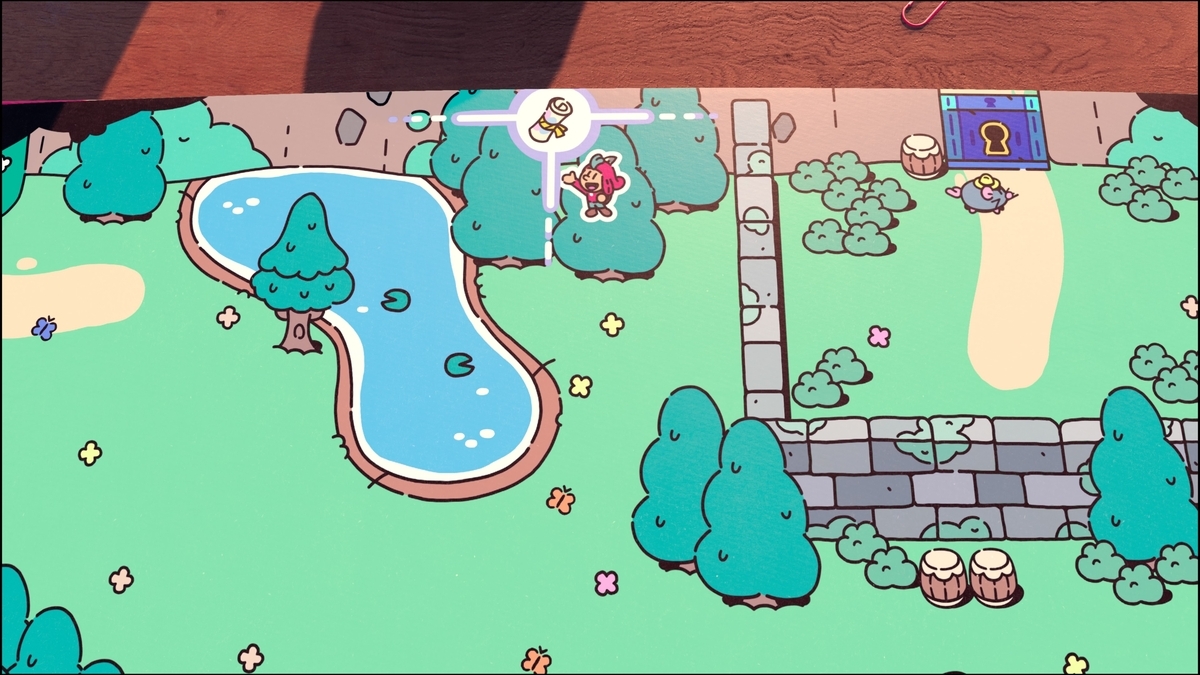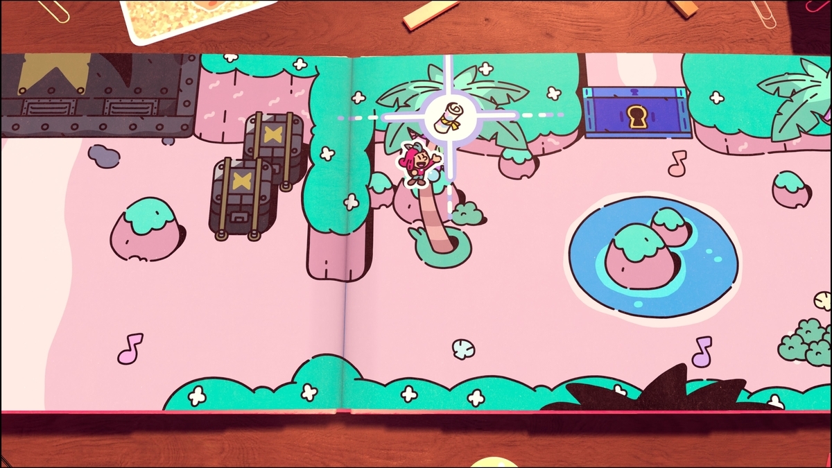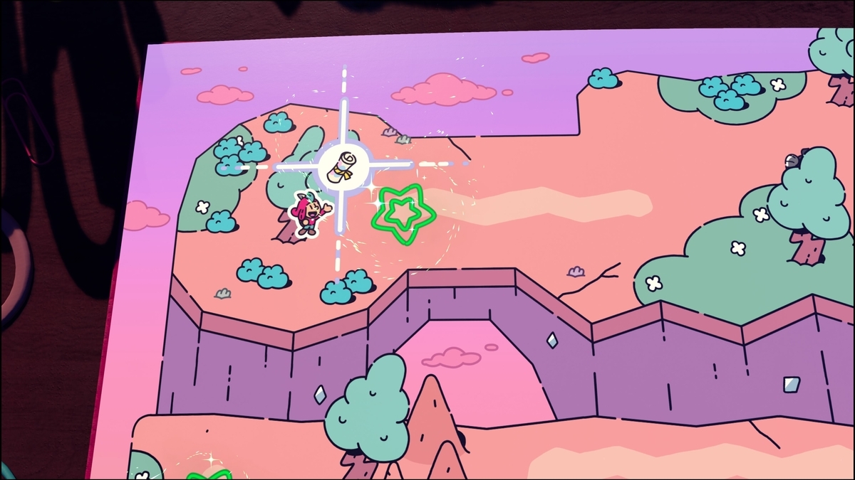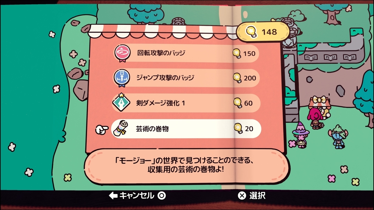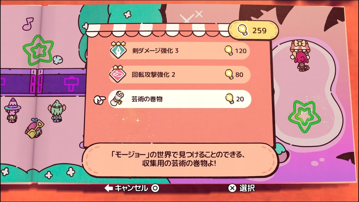 ジュースを渡し出てきたら、3D世界の本の北側から上へ進める段差があるので進んでいくと巻物がある