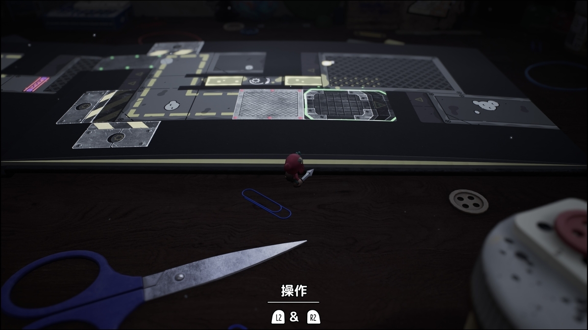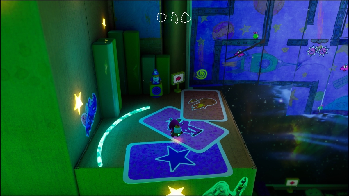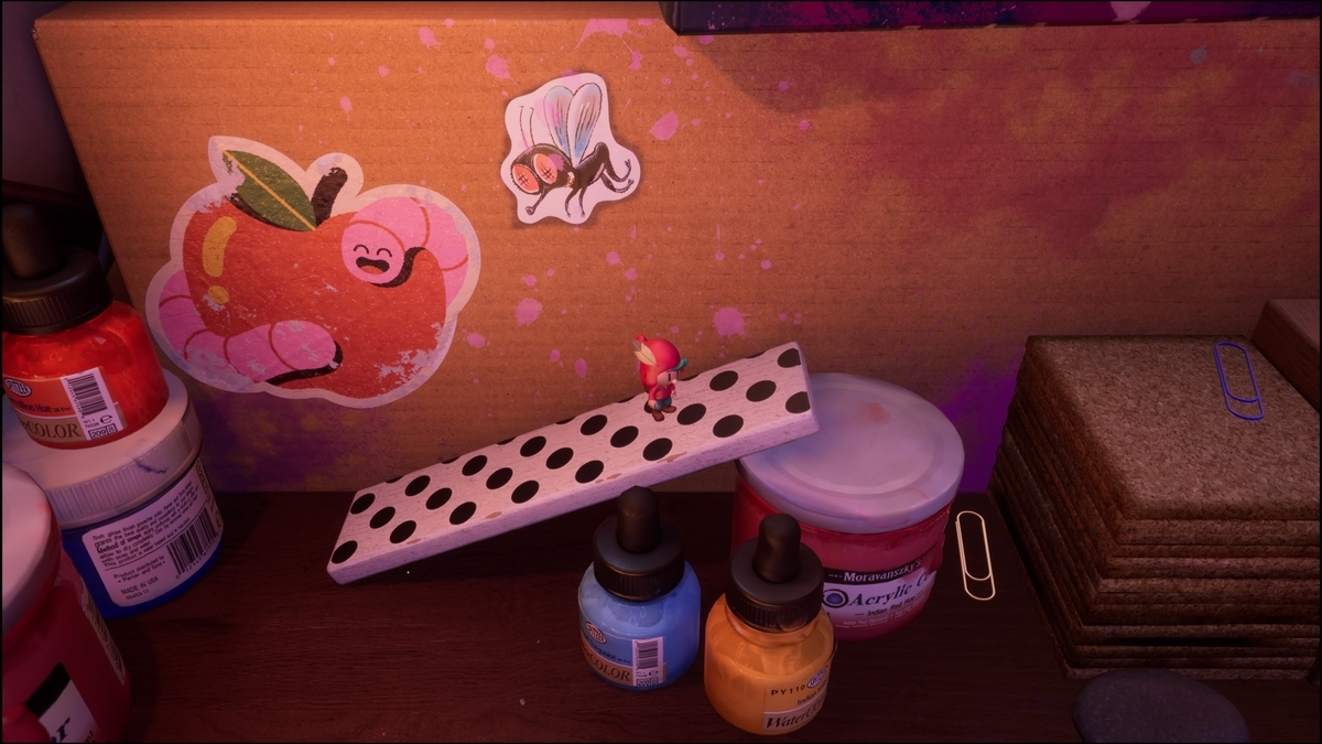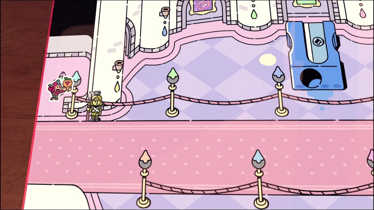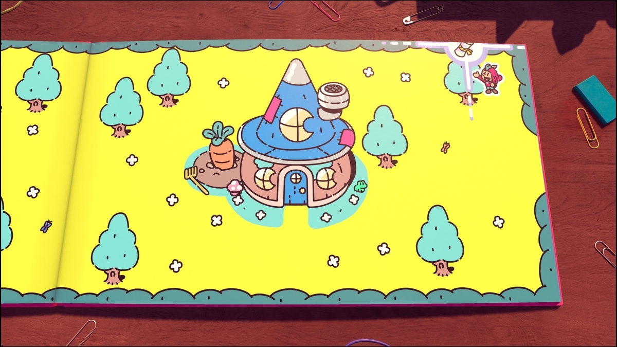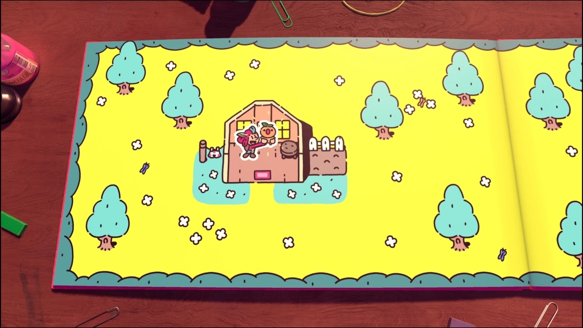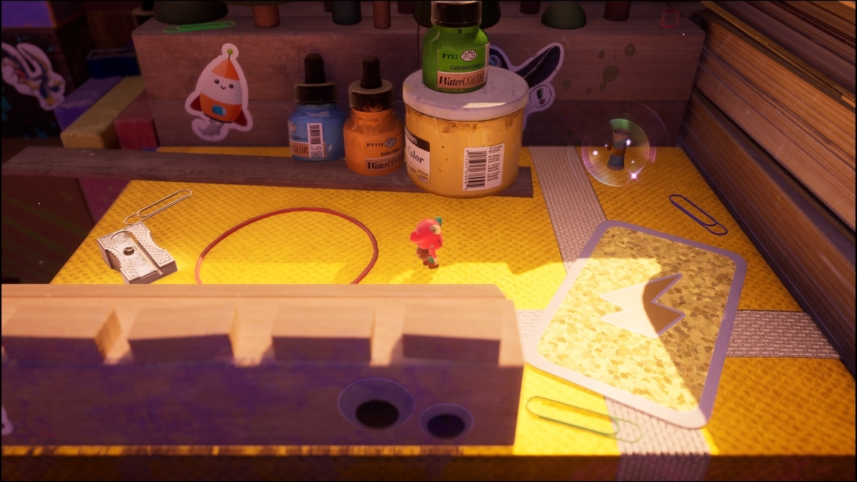 左のポータルから下へ行くと絵本がある、回転刃をスタンプで止めて絵本の中へ