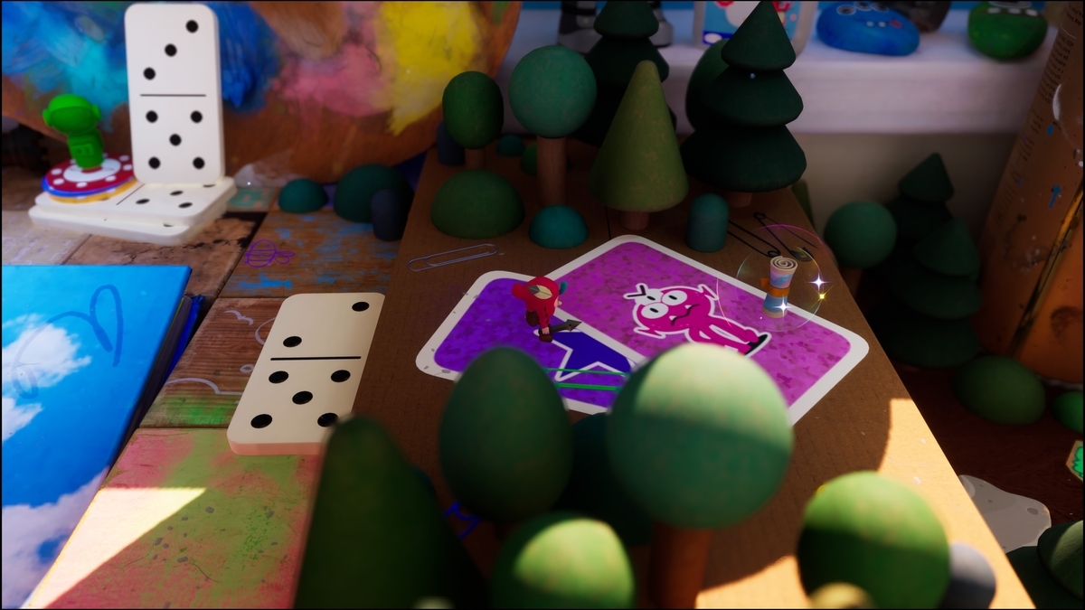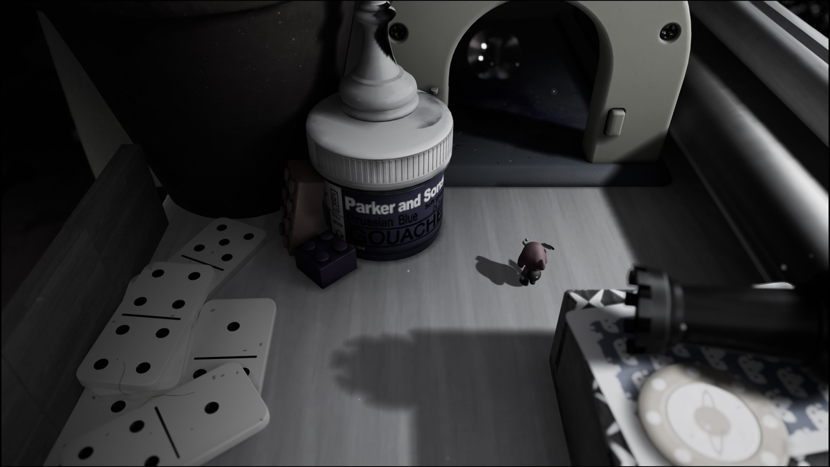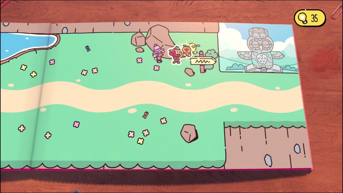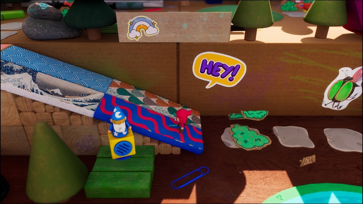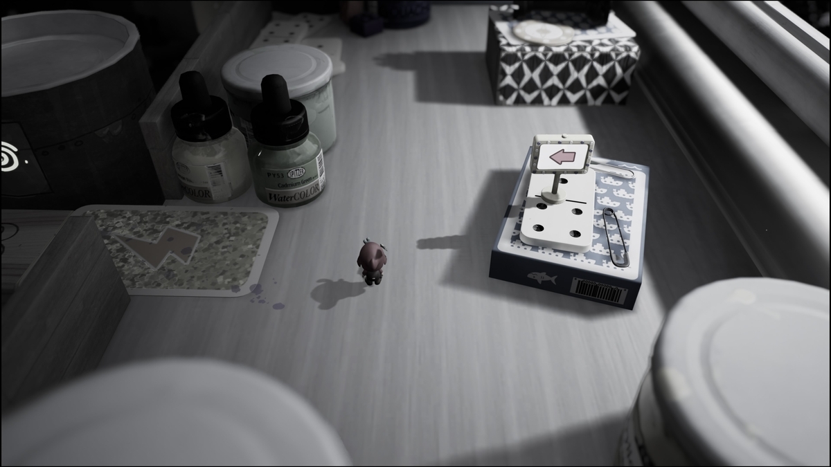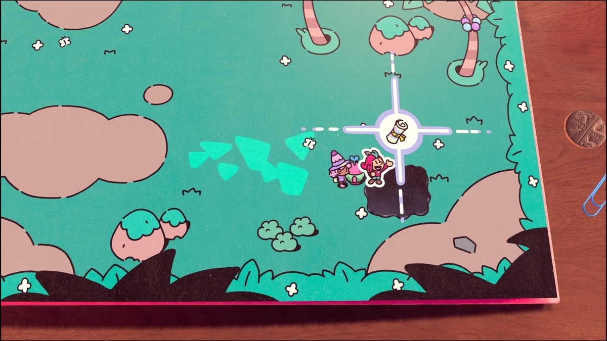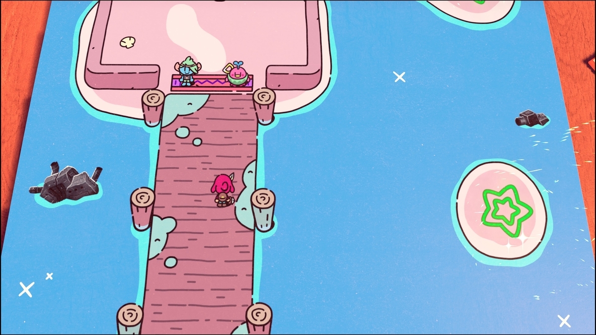 左のポータルから下へ行くと絵本がある、回転刃をスタンプで止めて絵本の中へ