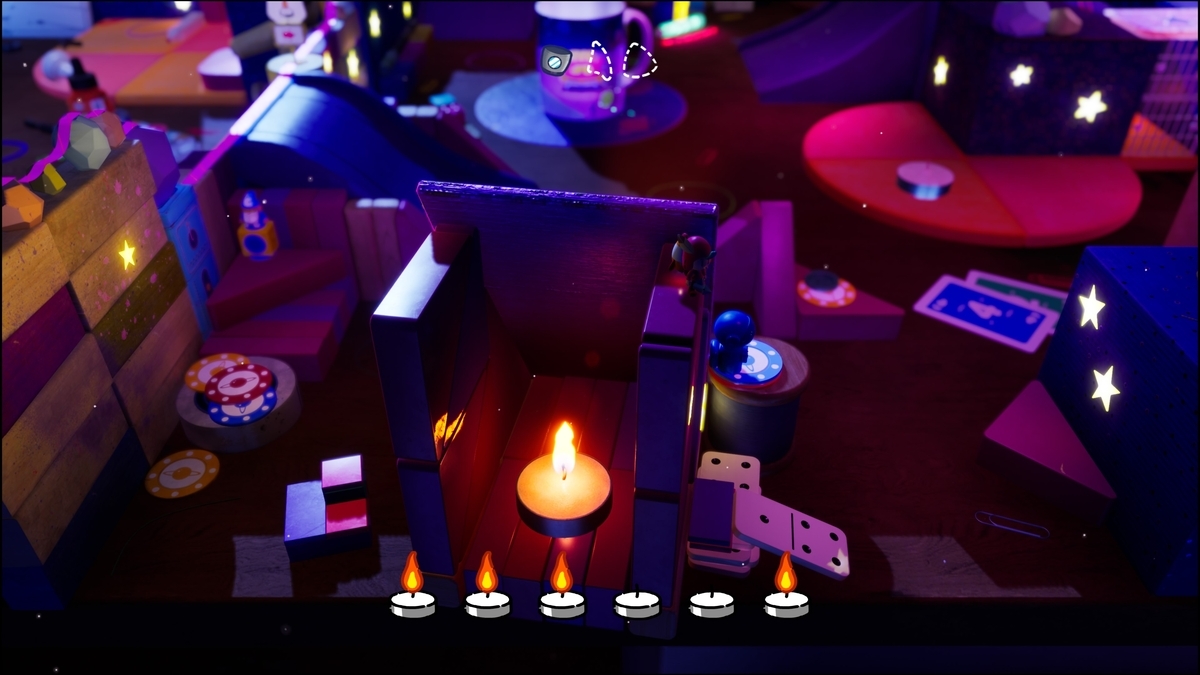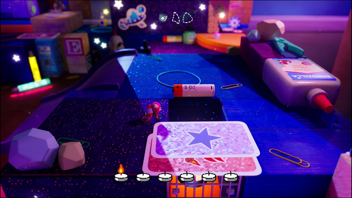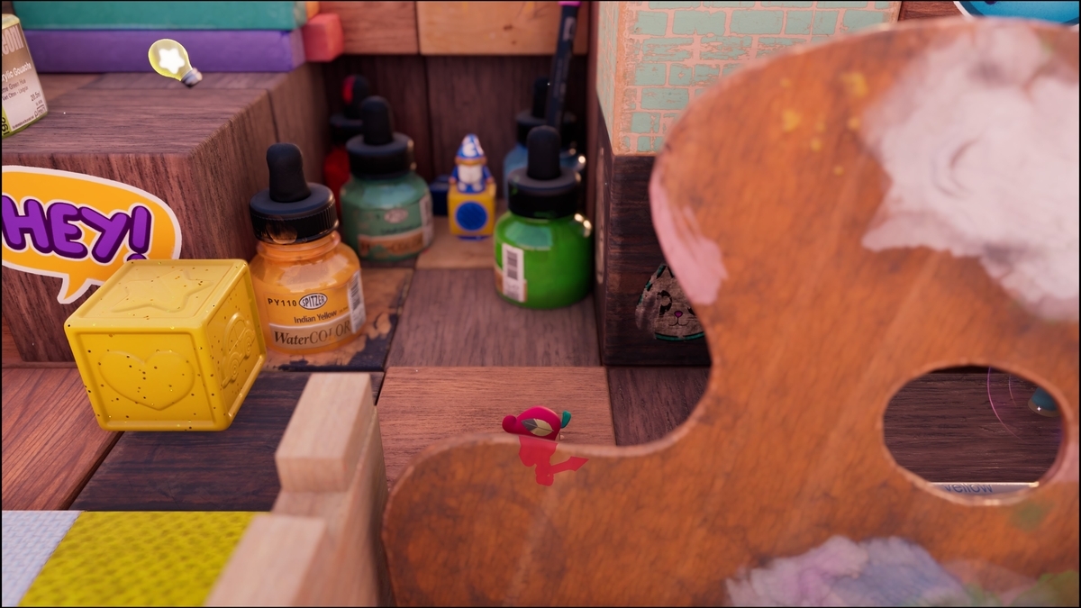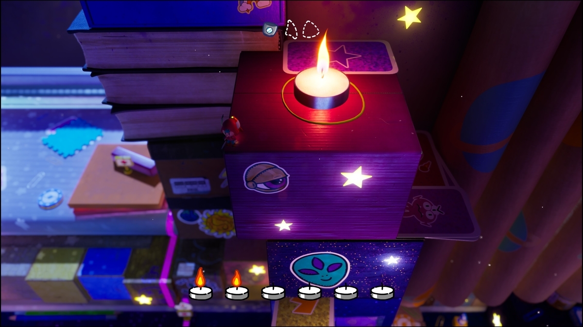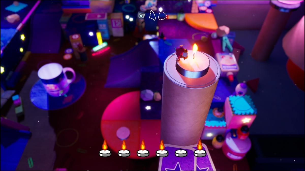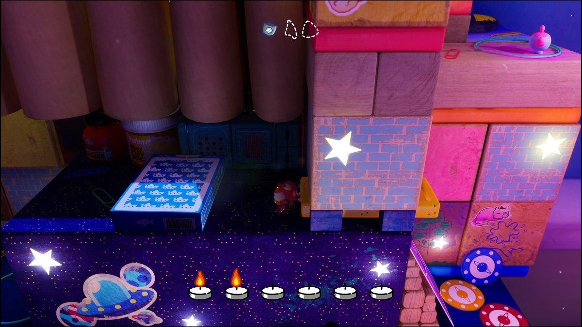 木を叩いて電球(通貨を得ていく)。家などエリア切り替えで電球が再び得られる。ノリノリじいさん(月ひげじいさん)のロウ探しへ。