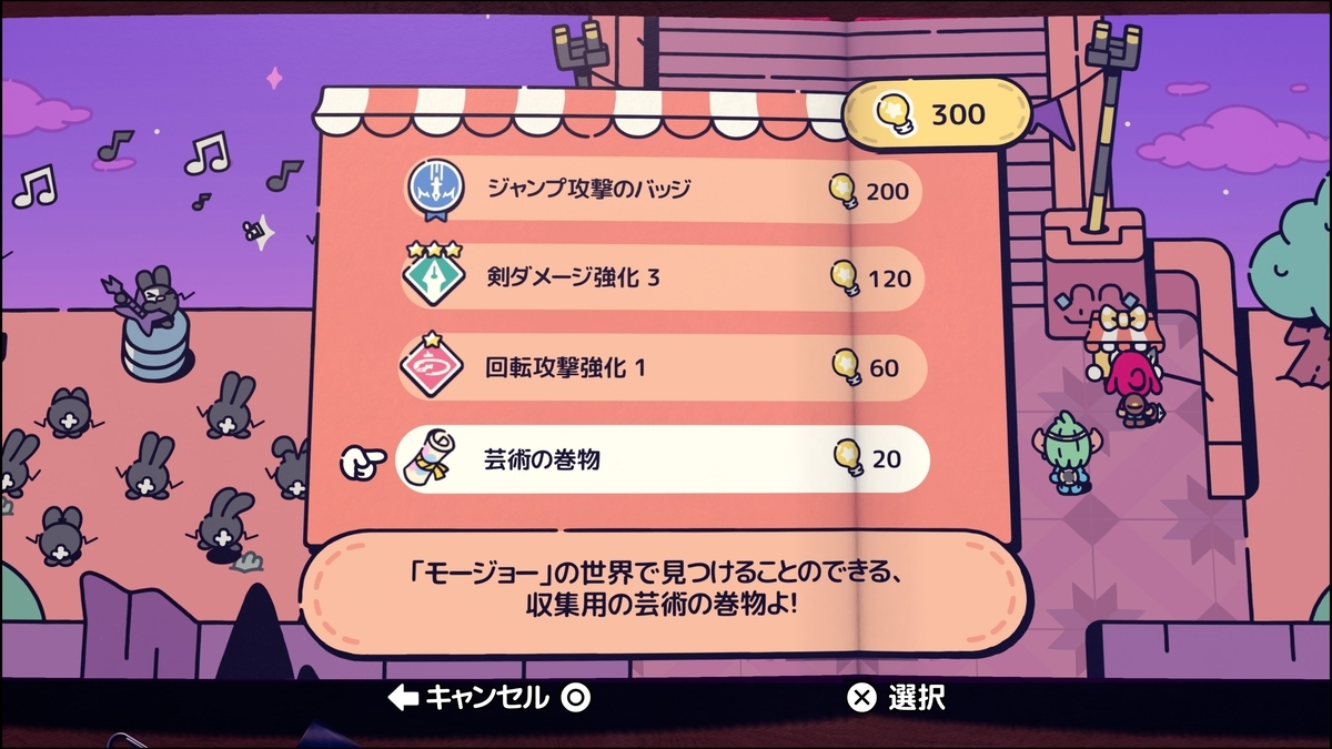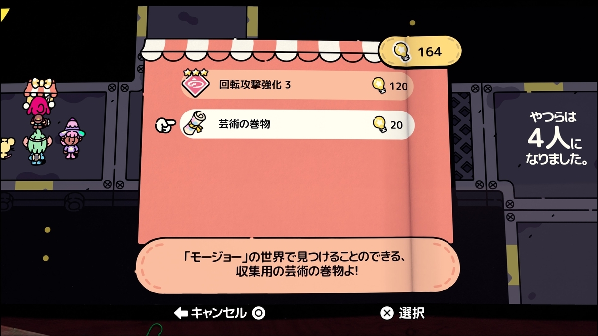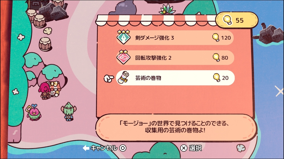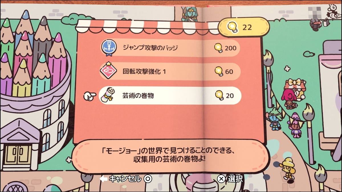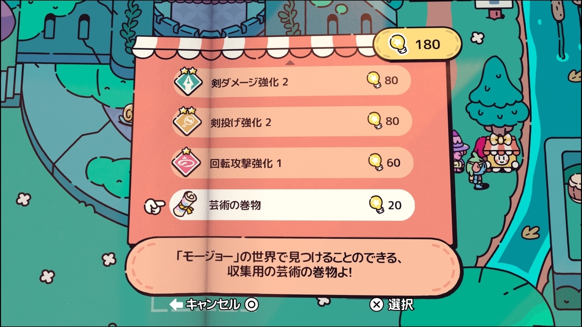 🏆「パワフルジョット」ジョットのアビリティを最大まで強化する。を解除できる。1周回で獲得するには、エリアチェンジでの稼ぎかほぼすべての電球の回収が必要。筆者の場合、残り42あまりでした。最悪最後の巻物を買わずに、先に強化でトロフィー解除してからなら20個は保険がきく
