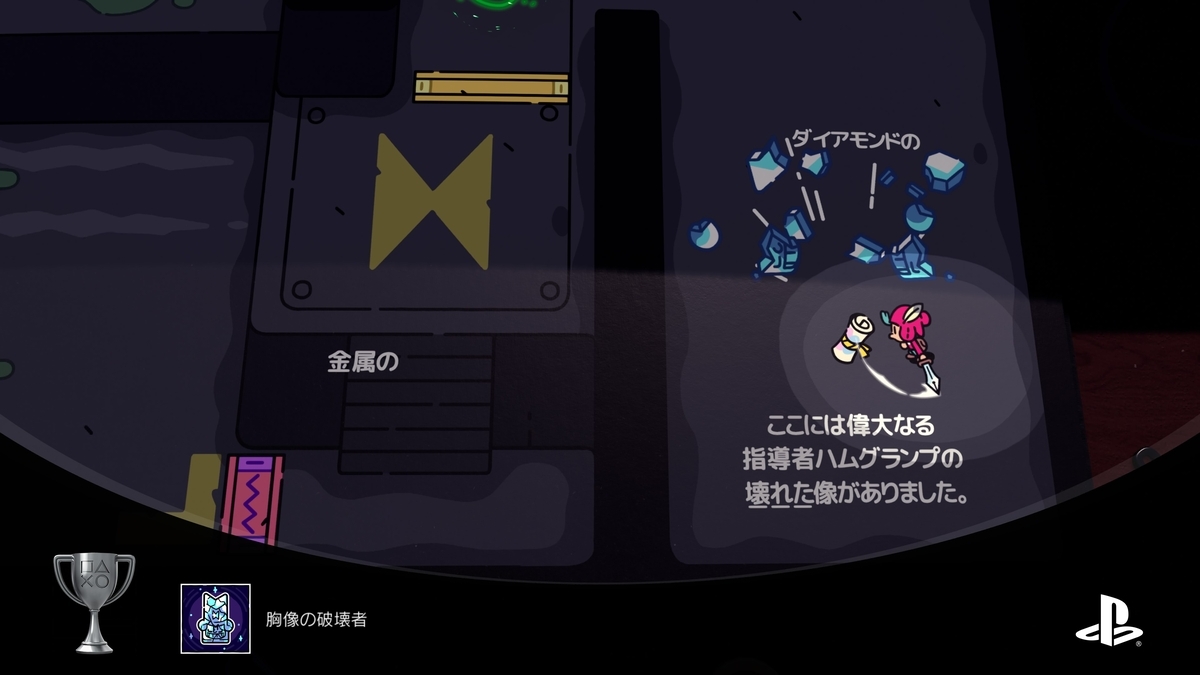 - 🏆「胸像の破壊者」文章を組み直してハムグランプの胸像を破壊する:右上のポータル右側の隠し部屋の文章のダイヤモンドを「壊れた」に変える