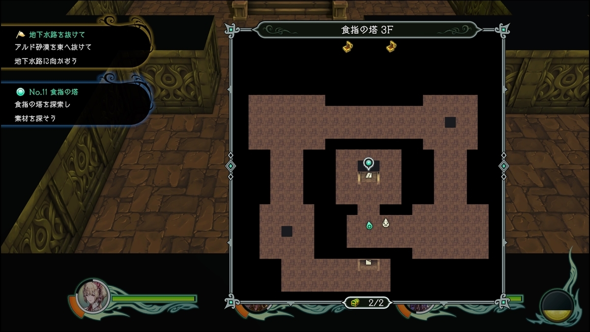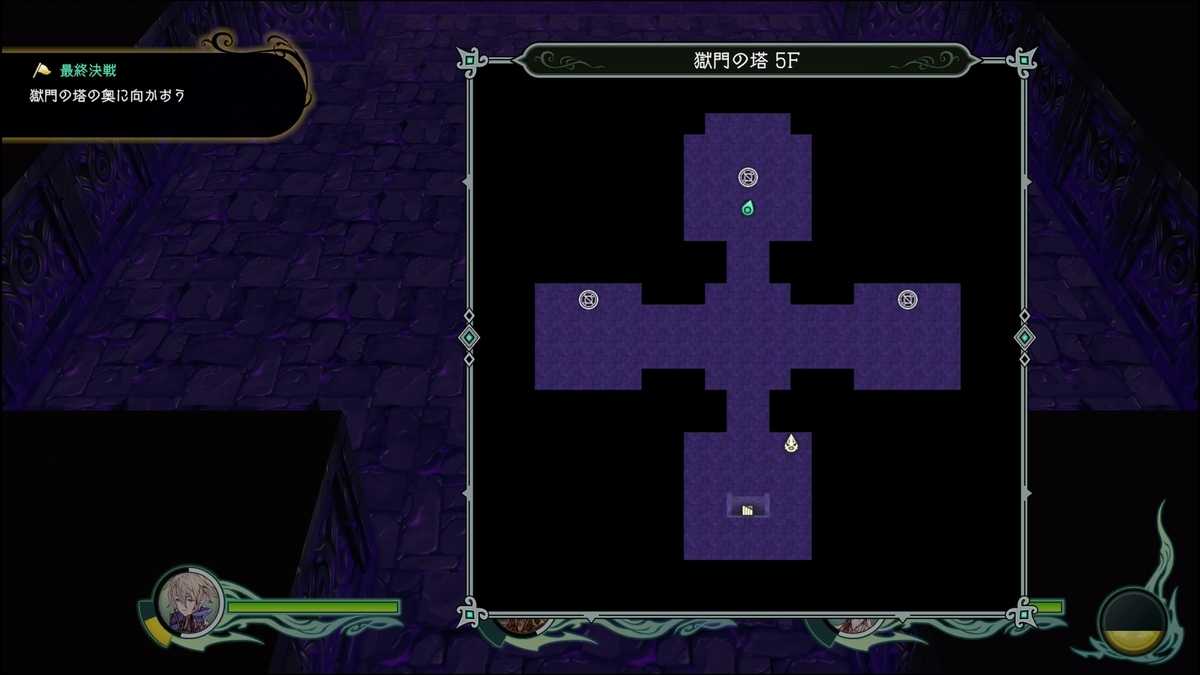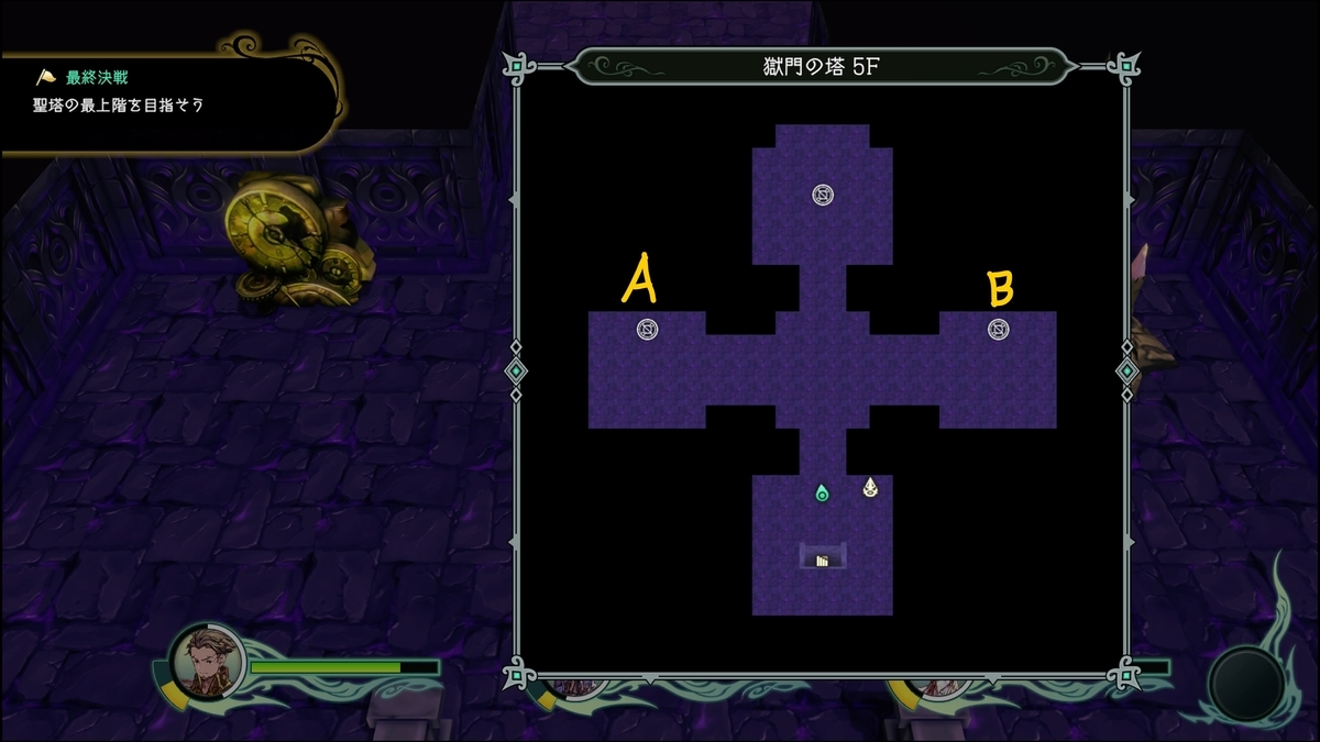 入口緑の魔法陣は3F右側のセーブポイントの所と繋がっている