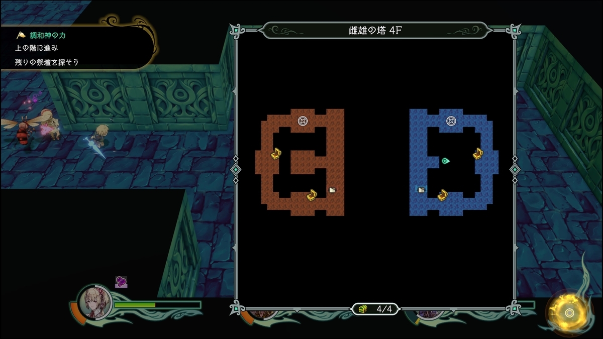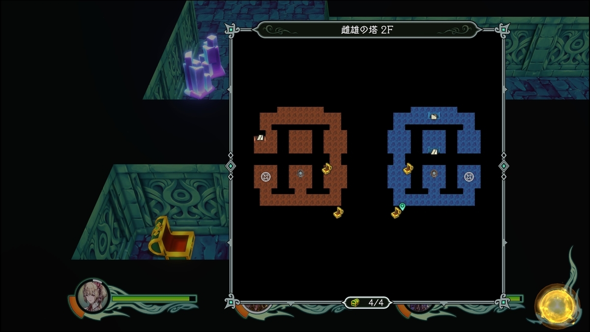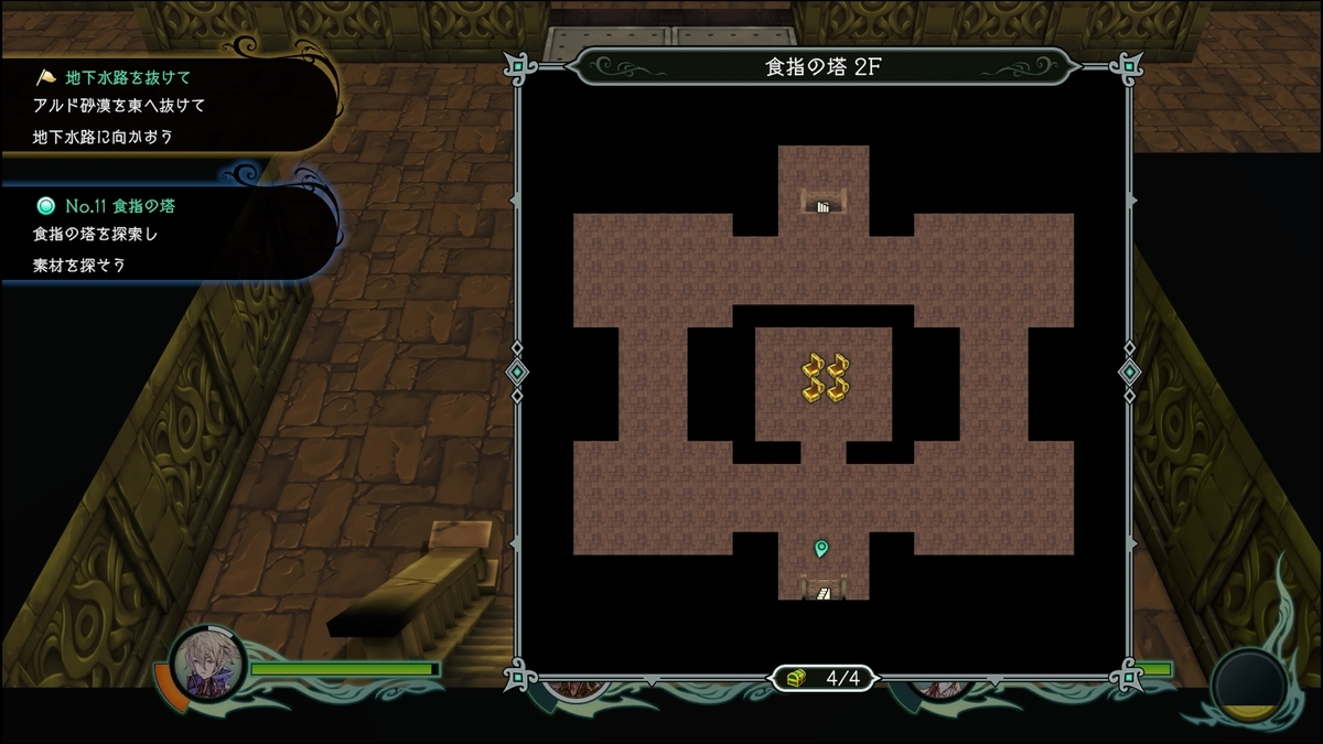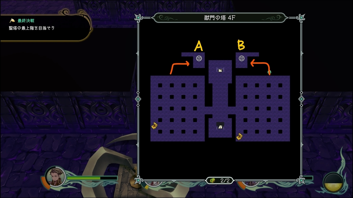 4FはクエストNo.21 「諸刃の塔」以降侵入できる。点灯させるられるスイッチは全て点灯することで宝箱もしくはトビラが開く