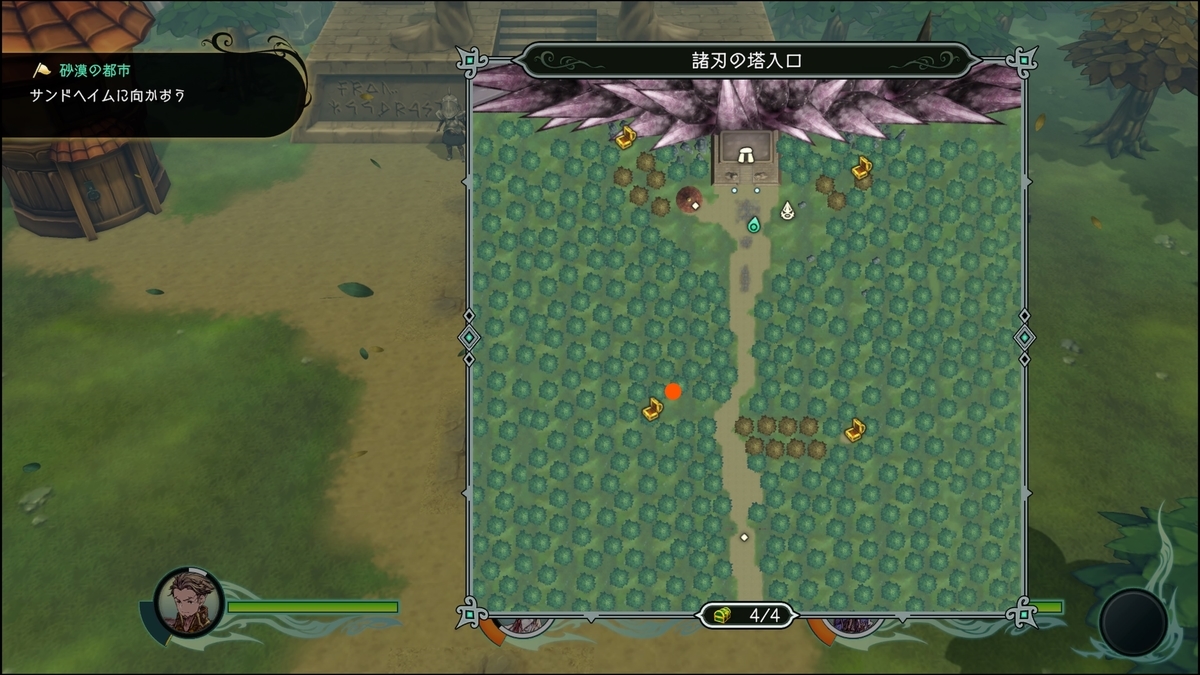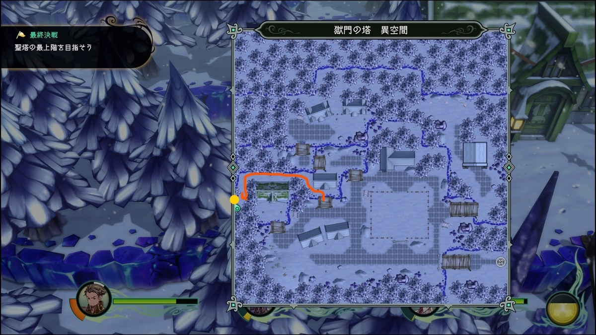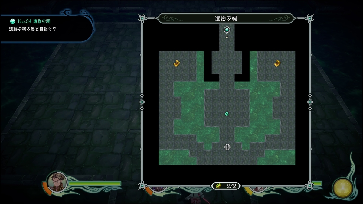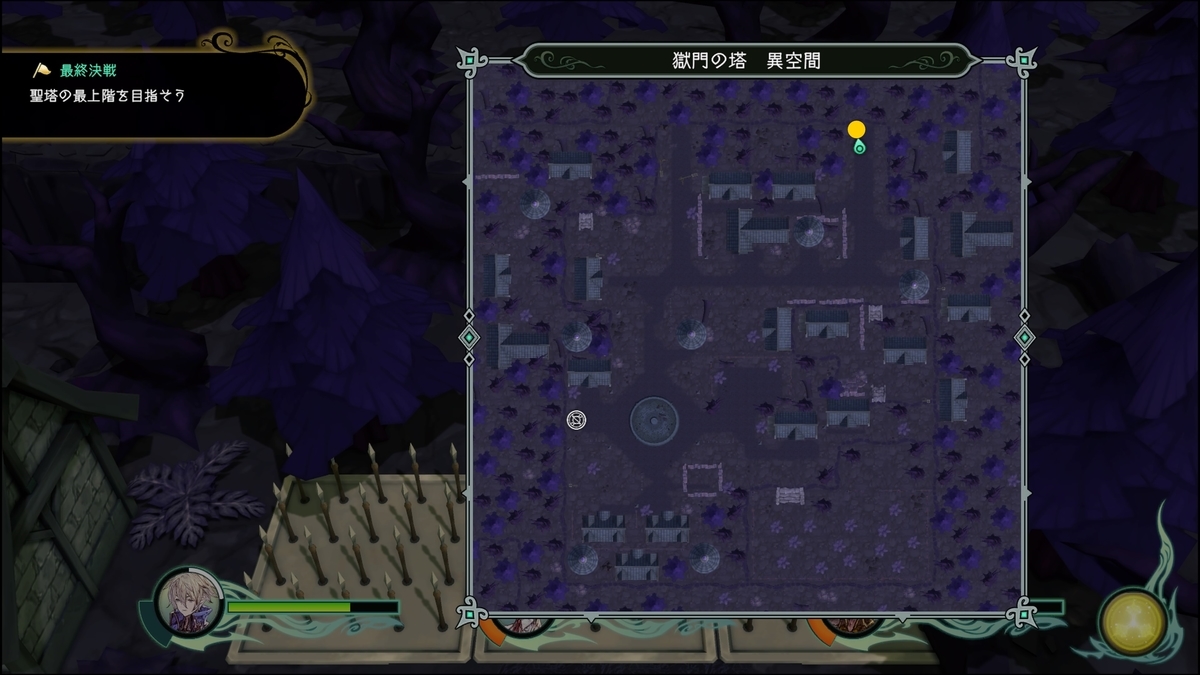 緑の陣は最初に戻り、紫は先に進む、黄色は最終的にいく所もしくはセーブポイント(回復)
