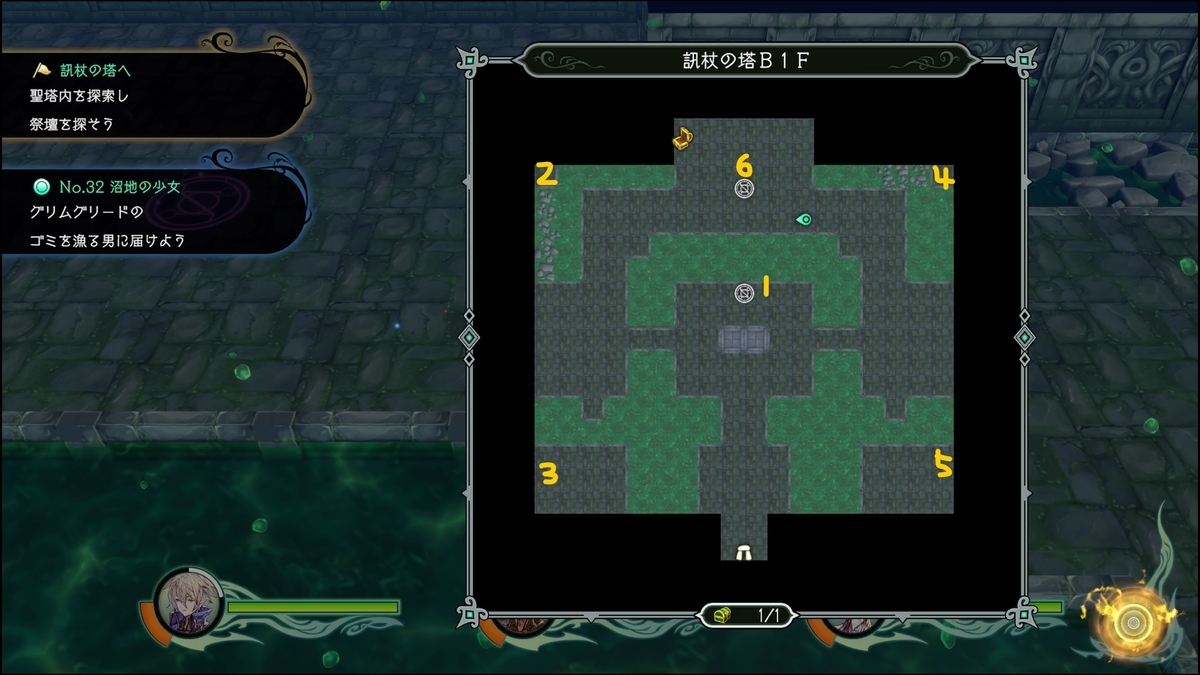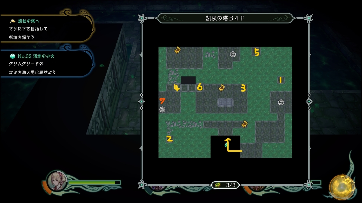 7でB1Fに戻り、紫の魔法陣からB2Fの6のレバー操作で完成。B5Fの宝箱を回収してから進もう
