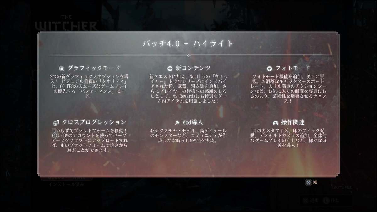 PlayStation 4版『ウィッチャー3 ワイルドハント』がパッチ4.00にアップデートされていることが条件になります。