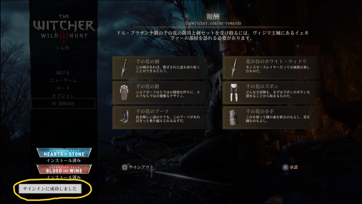 『ウィッチャー3 ワイルドハント』を再び起動してプレイを開始してください。報酬はヴィジマ王城でお受け取りいただけます。報酬の場所は、所持品に追加されるイェネファーからの手紙をお読みください!